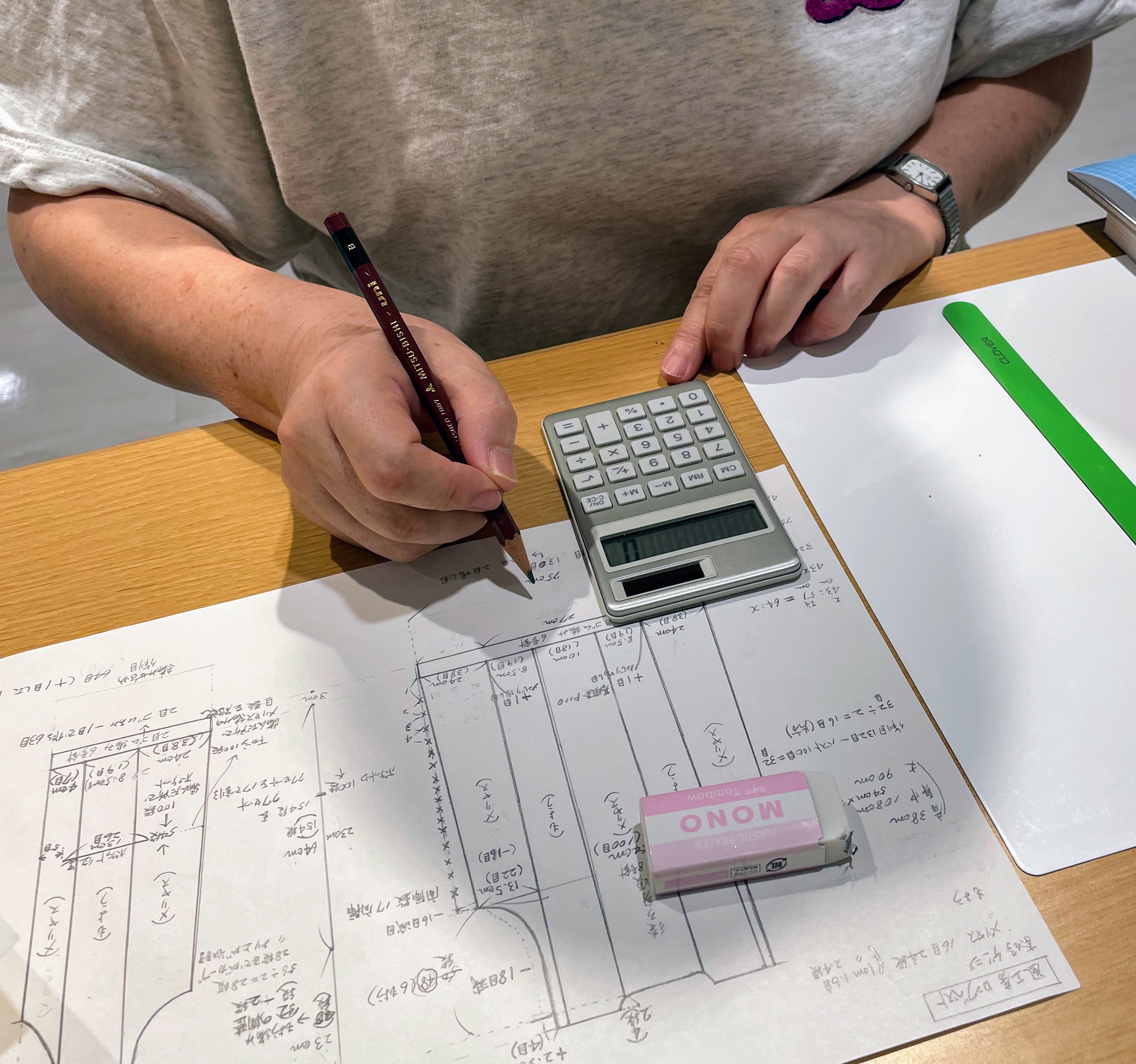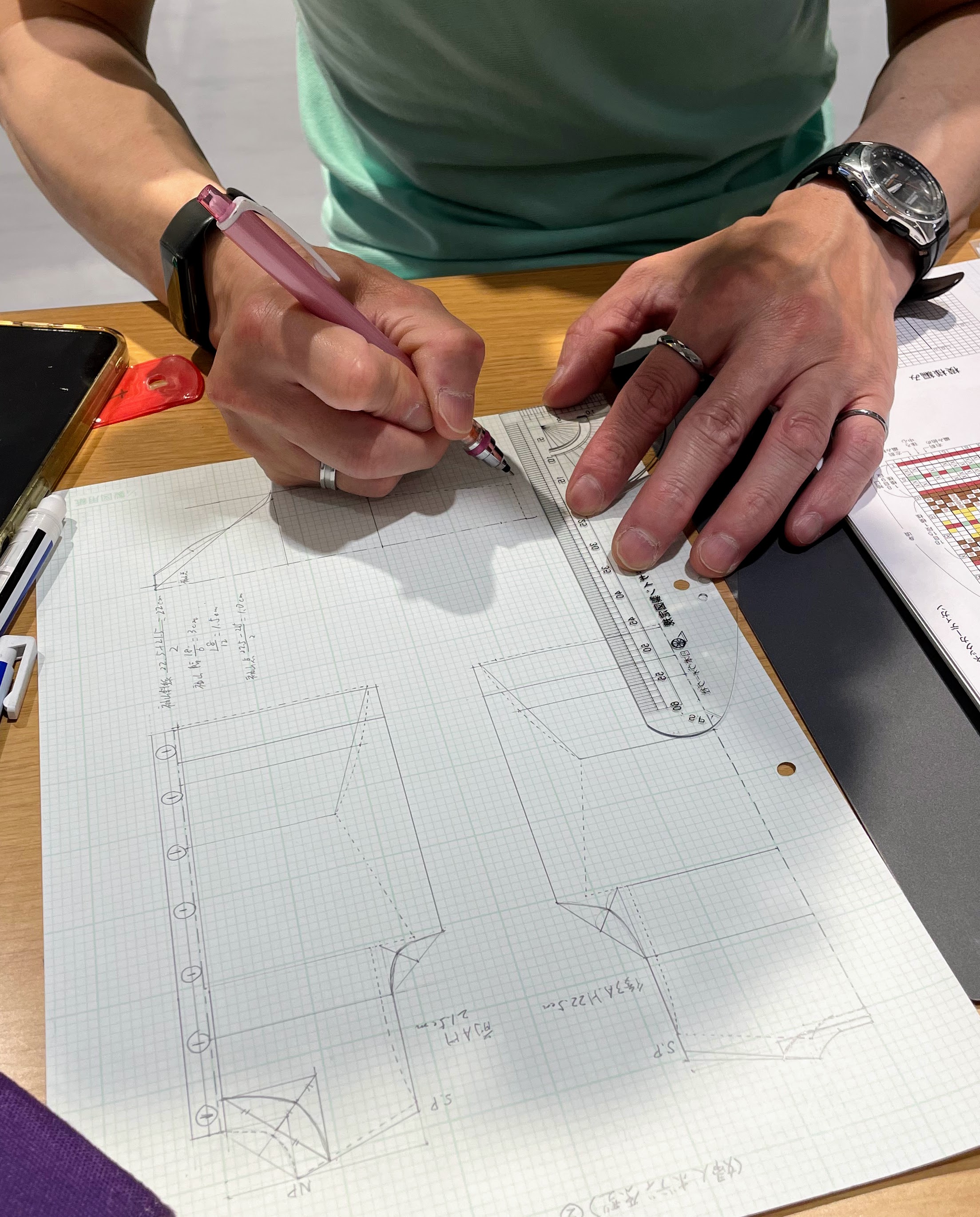 テキストに沿って、婦人Mサイズで製図していただいたところで
