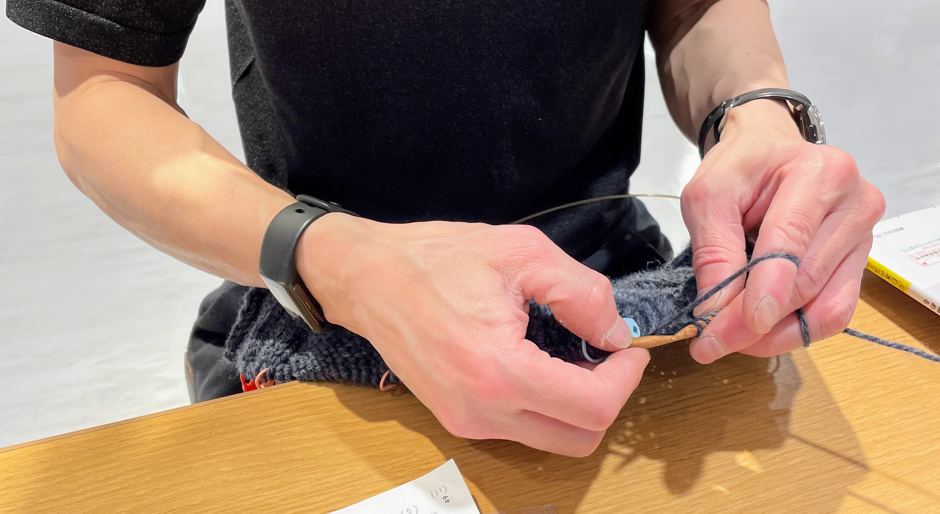 肩下がりを編む際に必要な編み残す引き返し編みも体験していただきました