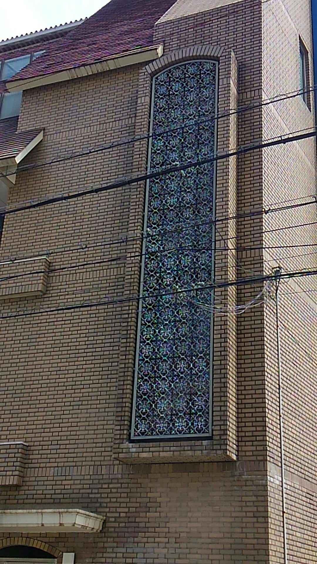 (会場近くのビルの窓。装飾がタティングレースっぽい)