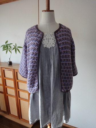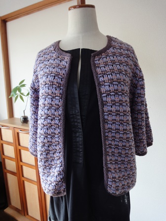 完成! 引き上げ模様のニットジャケット。