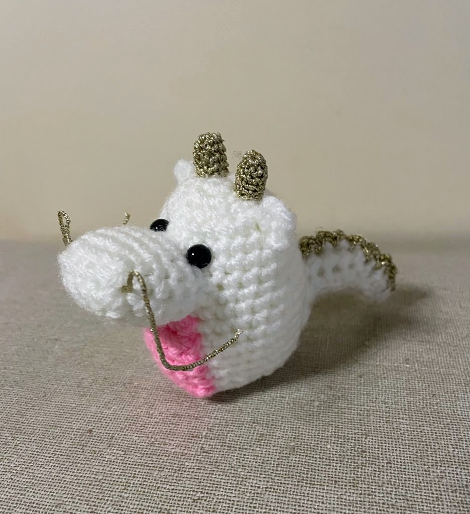 なので、ツノとたてがみとヒゲに使用した金色の糸は