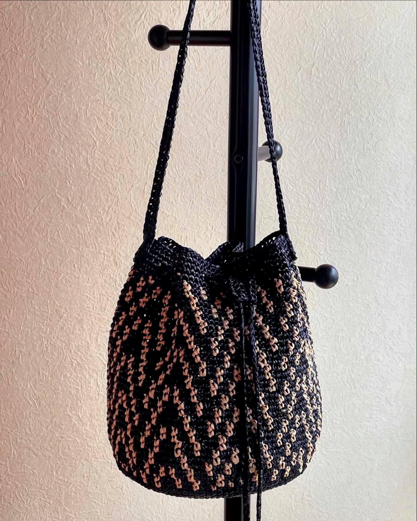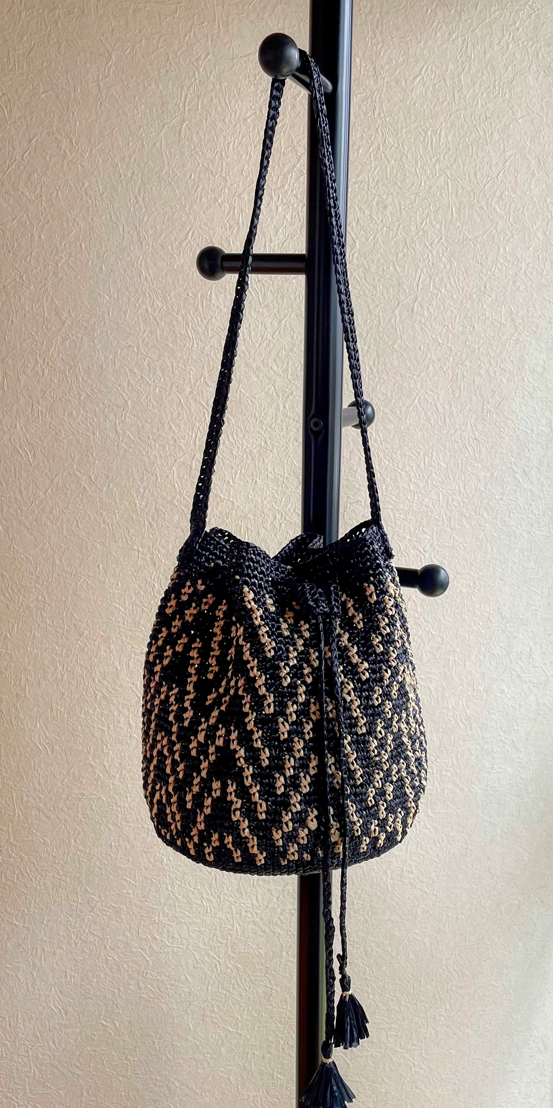 使用糸/エコアンダリヤ 色番#30(黒)3玉、色番#23(ベージュ)1玉