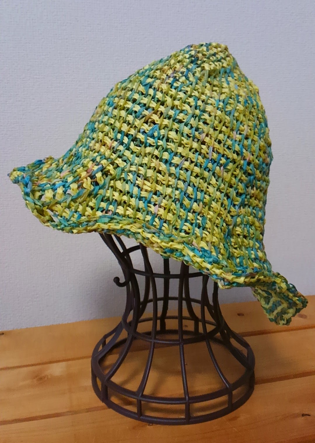 きれいなグラデーション色入りの毛糸で編みます(色のバリエーションあり)。