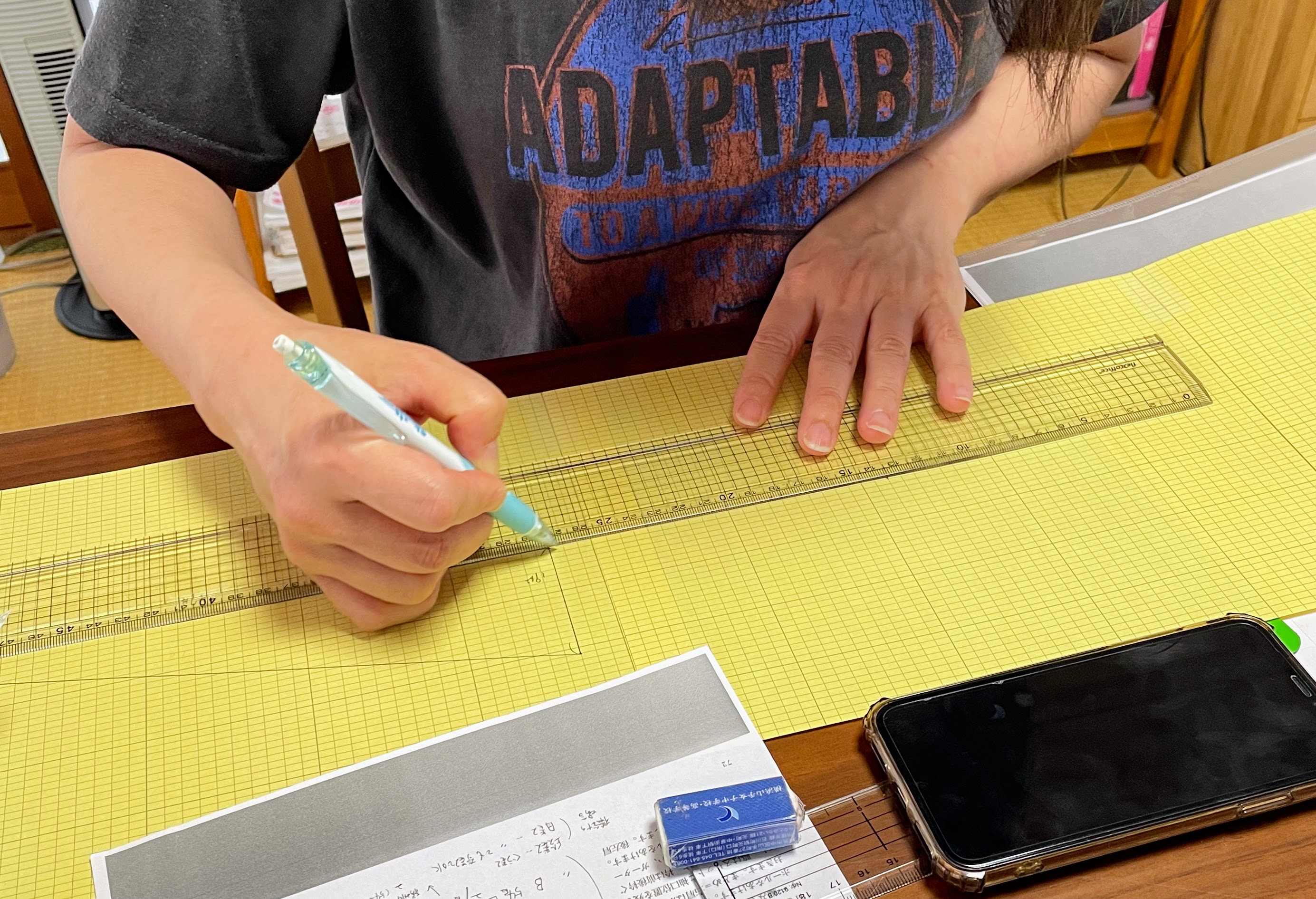 前回のレッスンでは、肩下がりや衿ぐりの割り出しを行っていただきました。