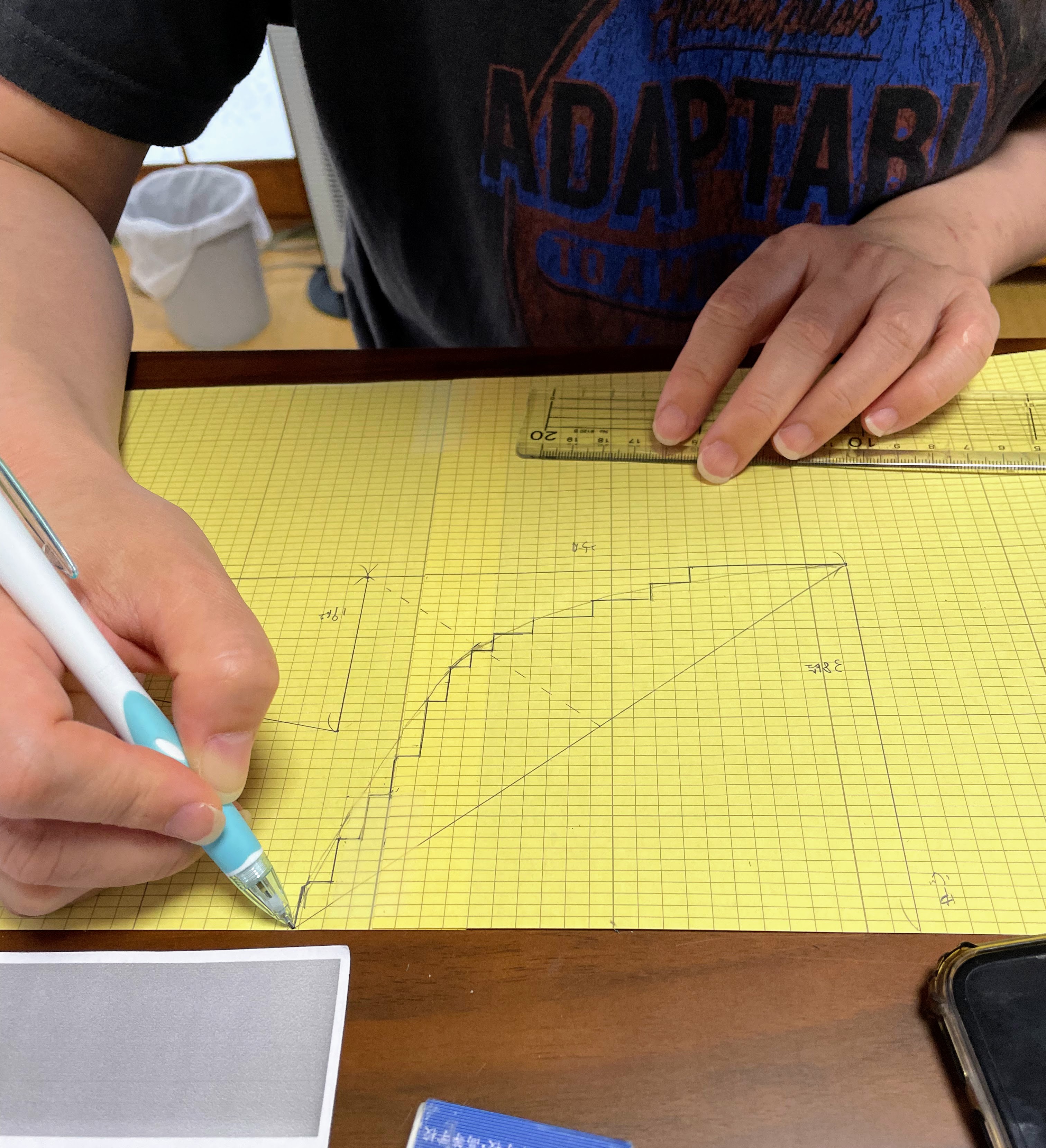 その後、前身頃の肩下がりの割り出しを行っていただきました。