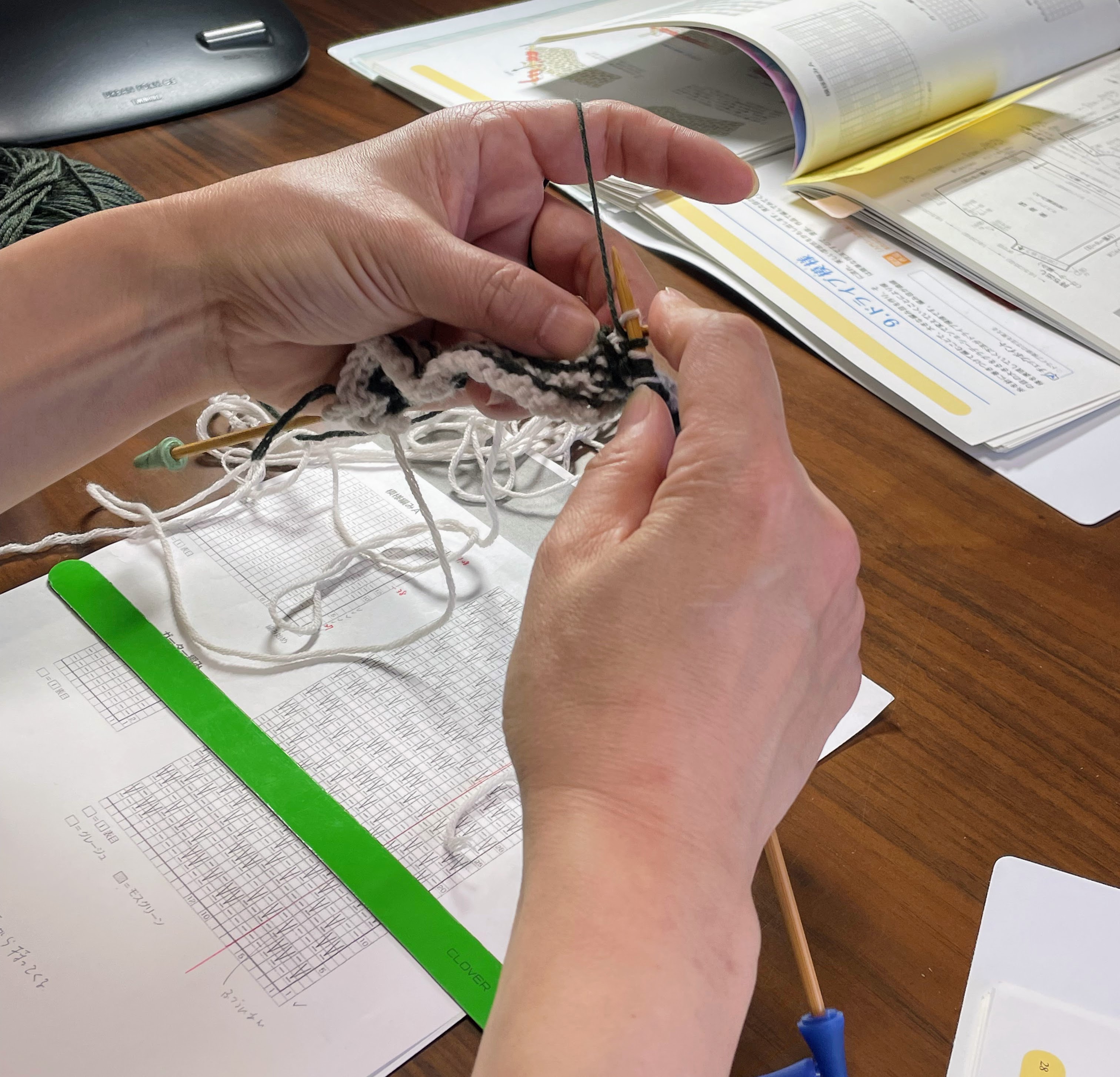 表目と裏目の地模様のパターン課題に取り組んでくださり、