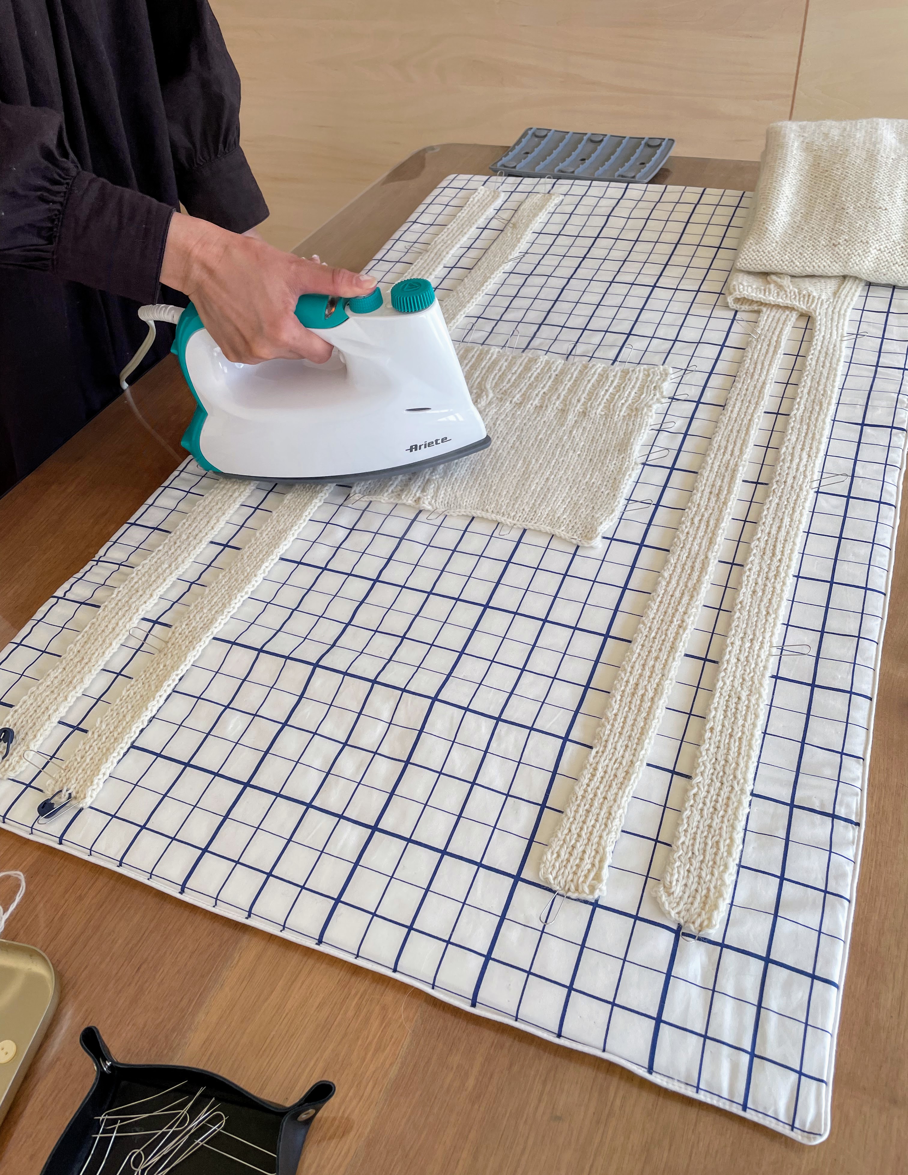 この日は小物課題のハンドウォーマーを重点的に。
