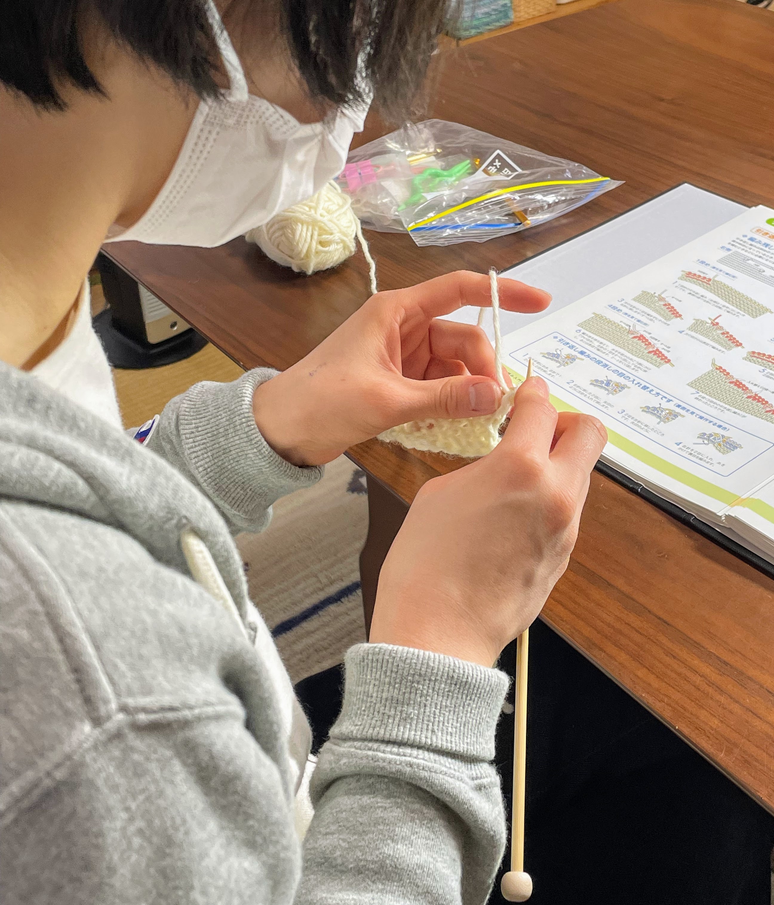 日本手芸普及協会<棒針編み入門科>のカリキュラムに取り組んでいらっしゃるお方が