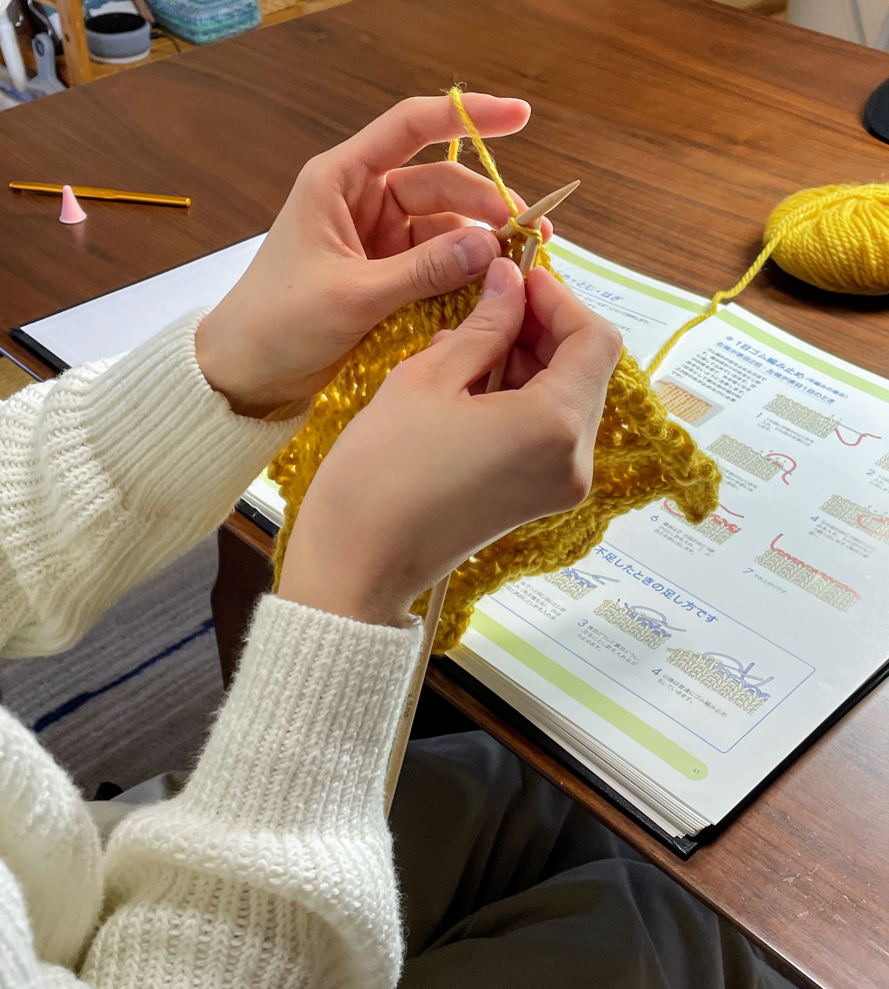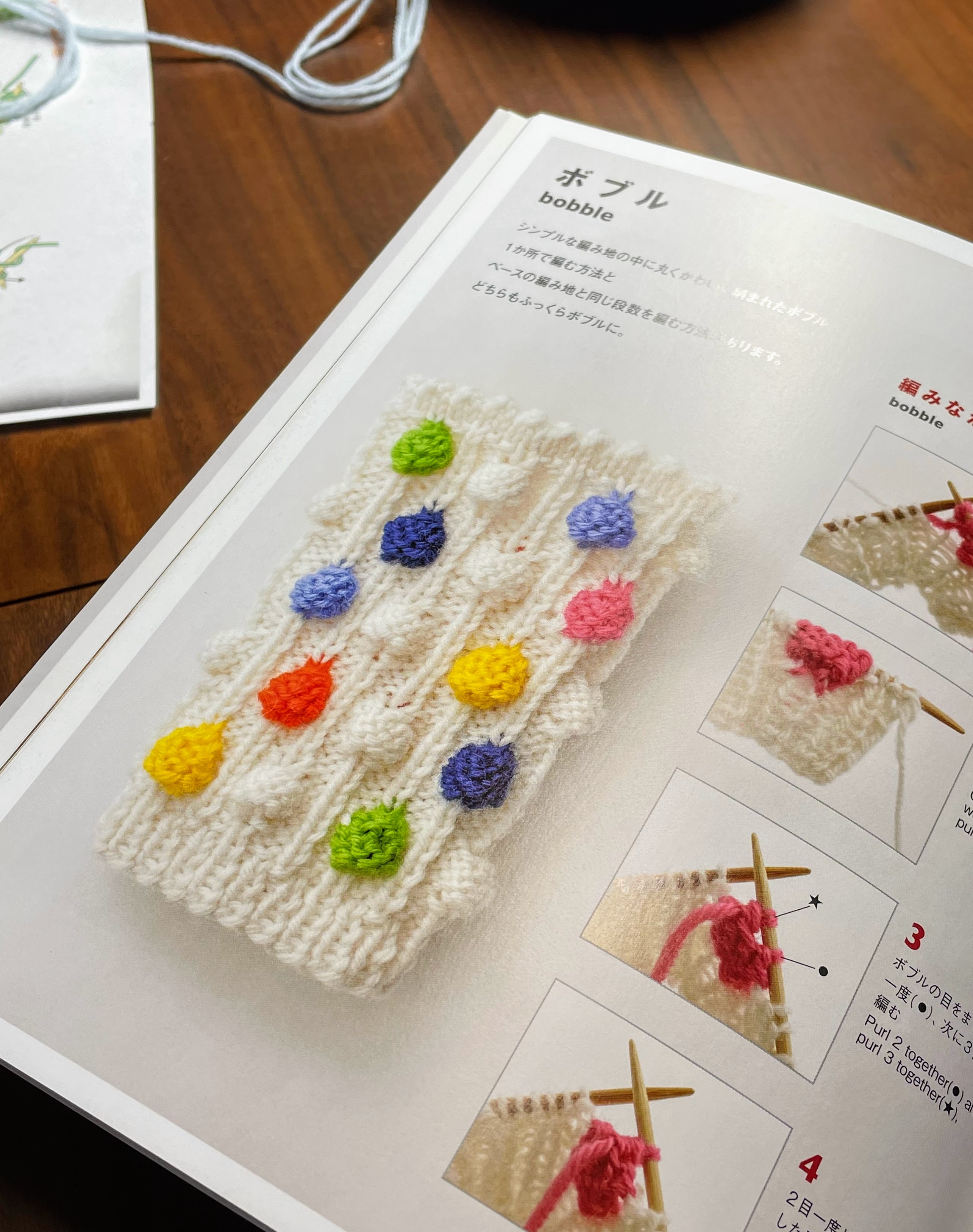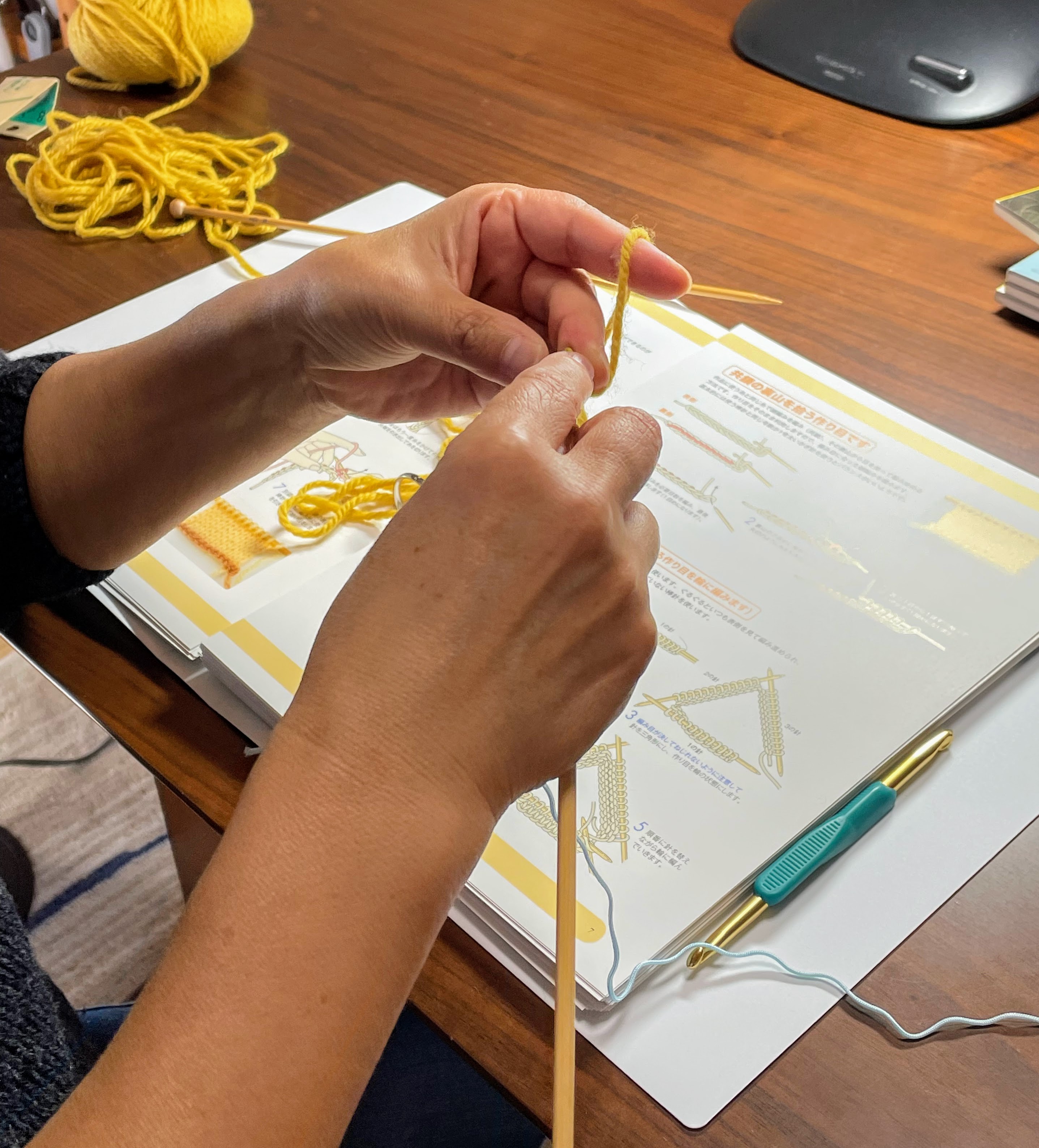 引き上げ編み(表・裏両方ありました)や交差編み(右上・左上両方ありました)もはじめてとのことだったので、