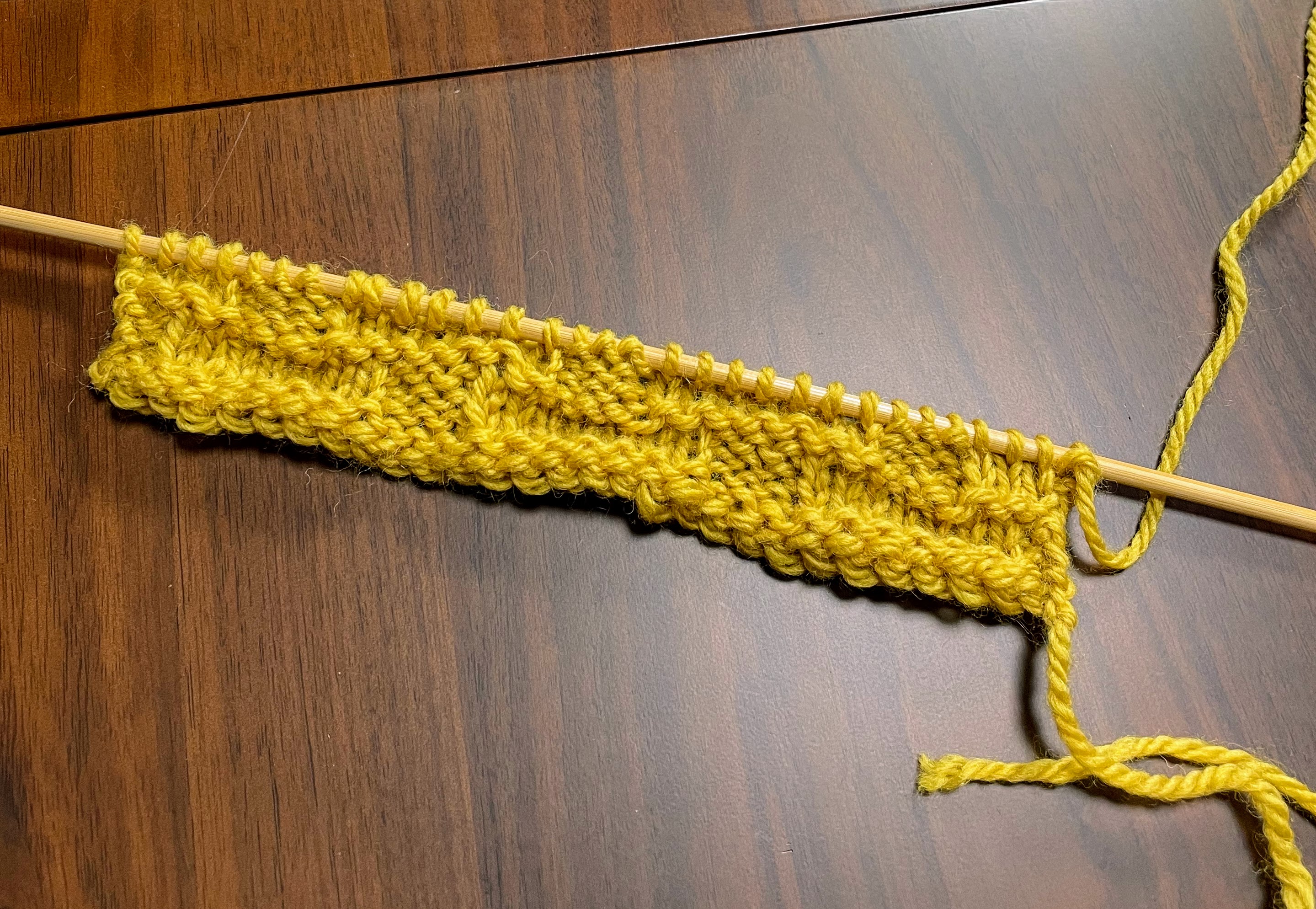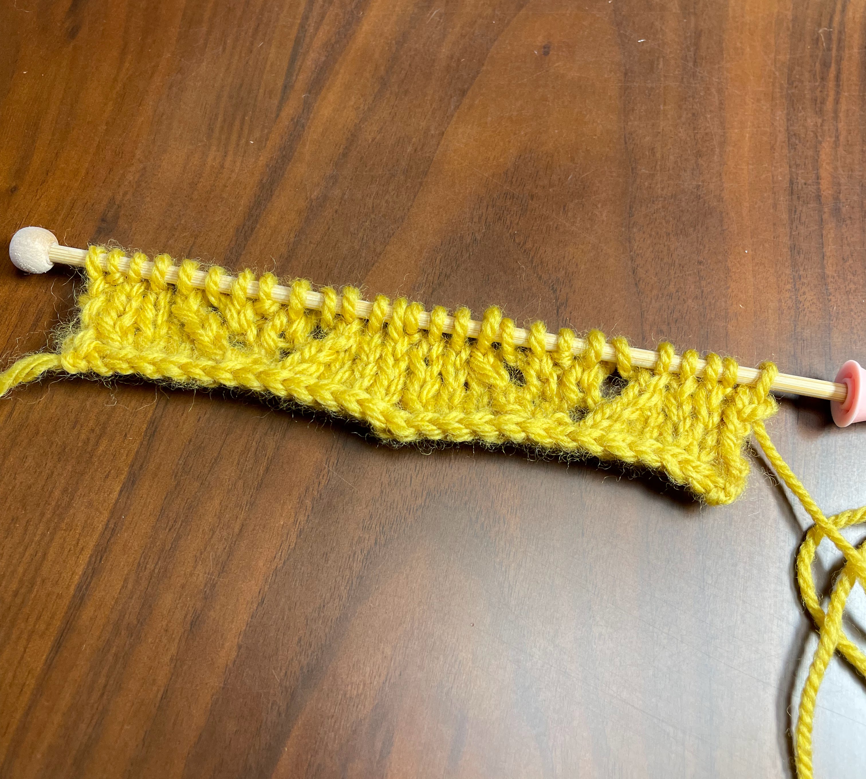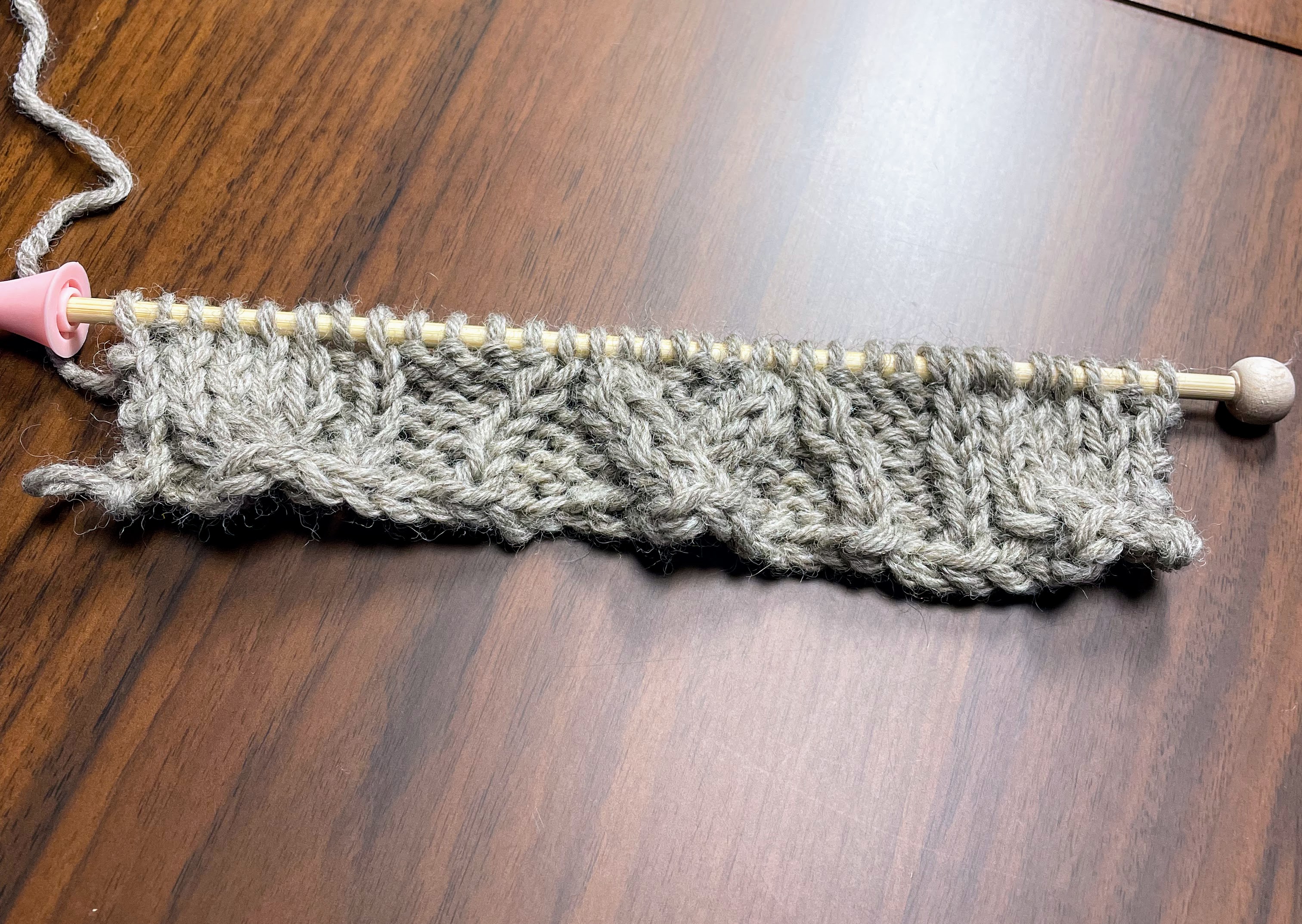 引き上げ編みのラインがくっきり浮き出てきてますね