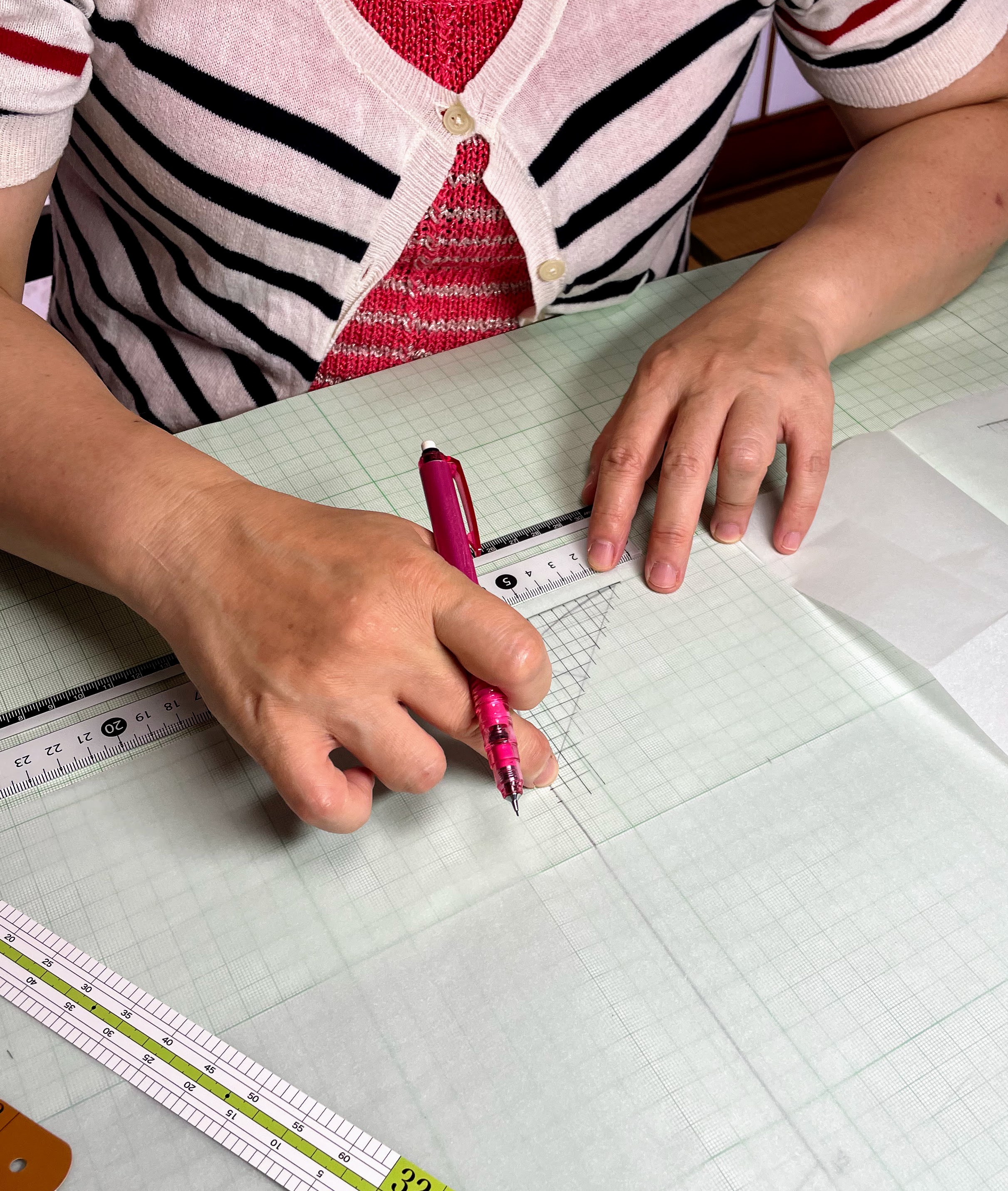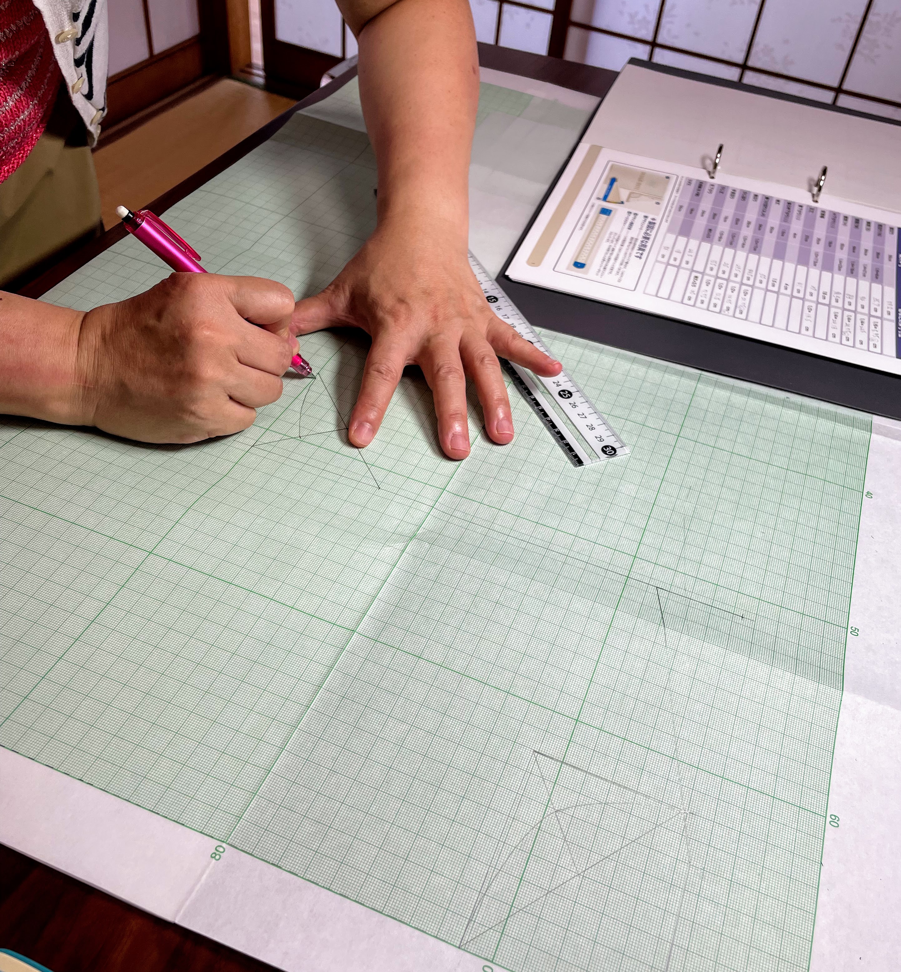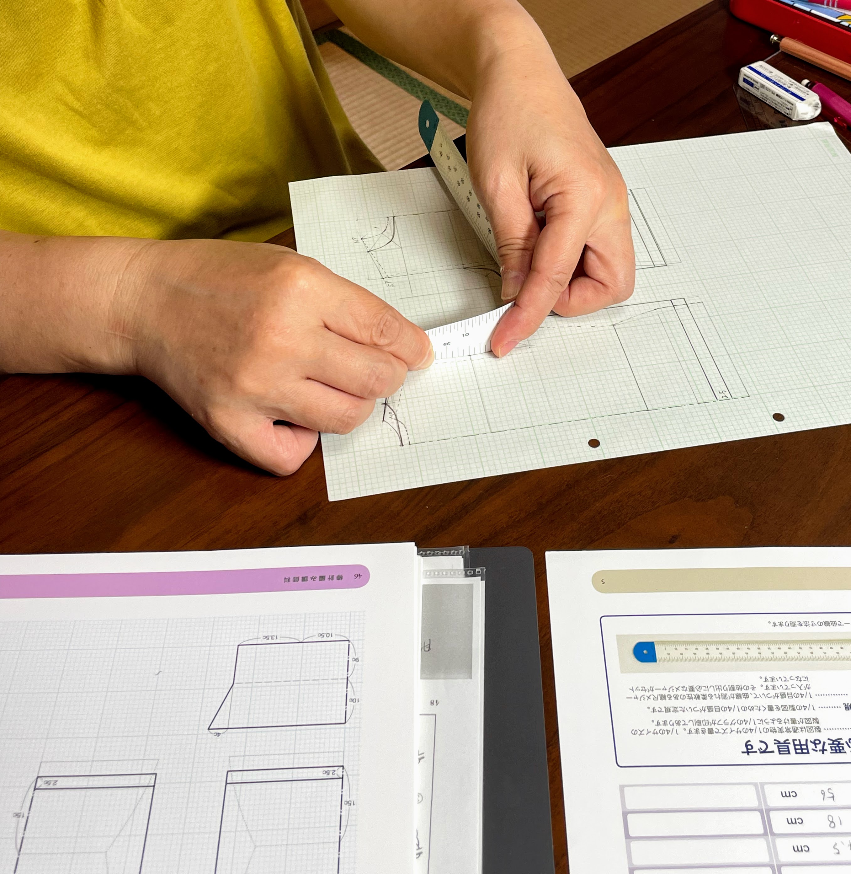 出来上がりサイズを確認しながらピン打ちをし、