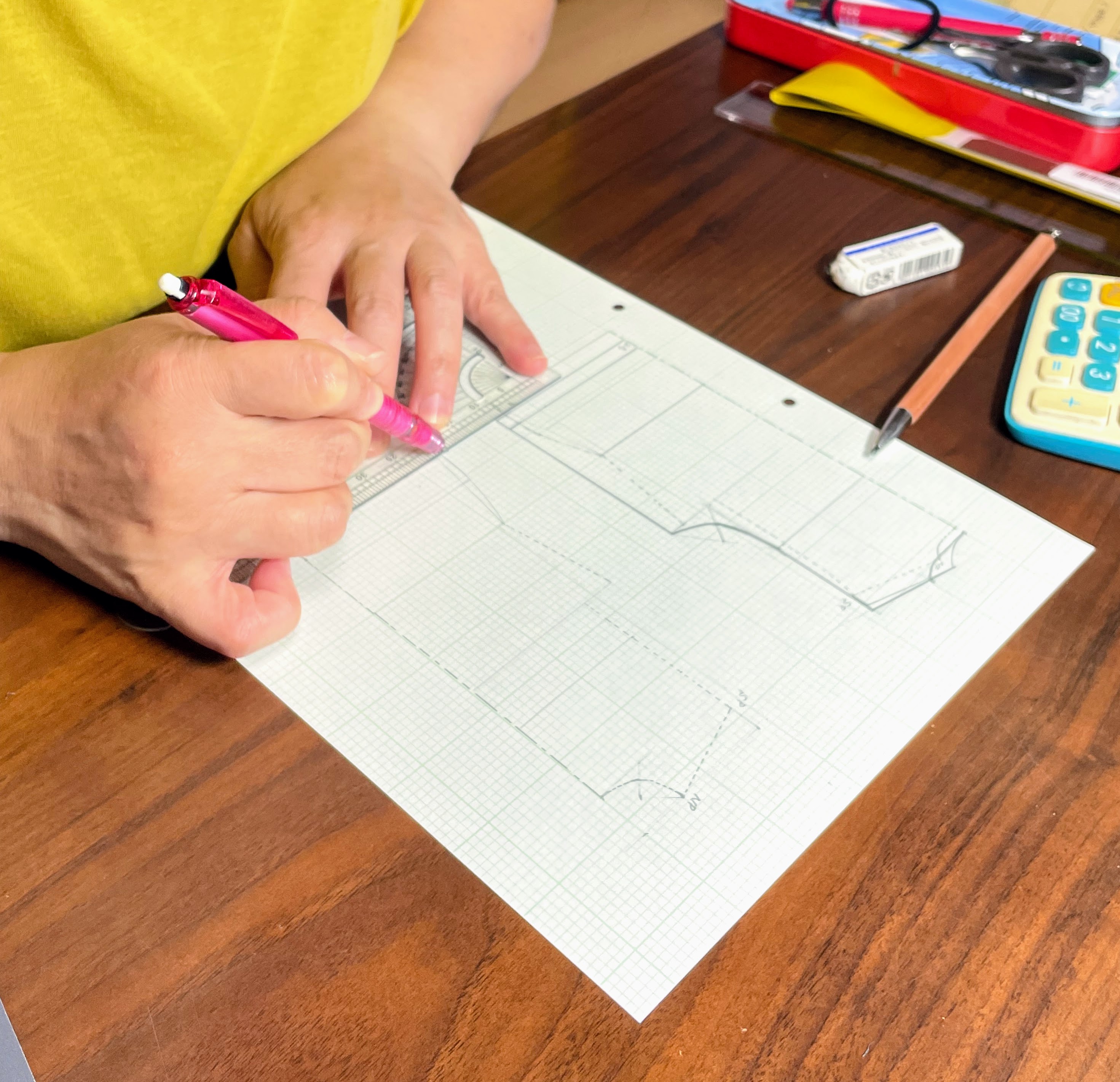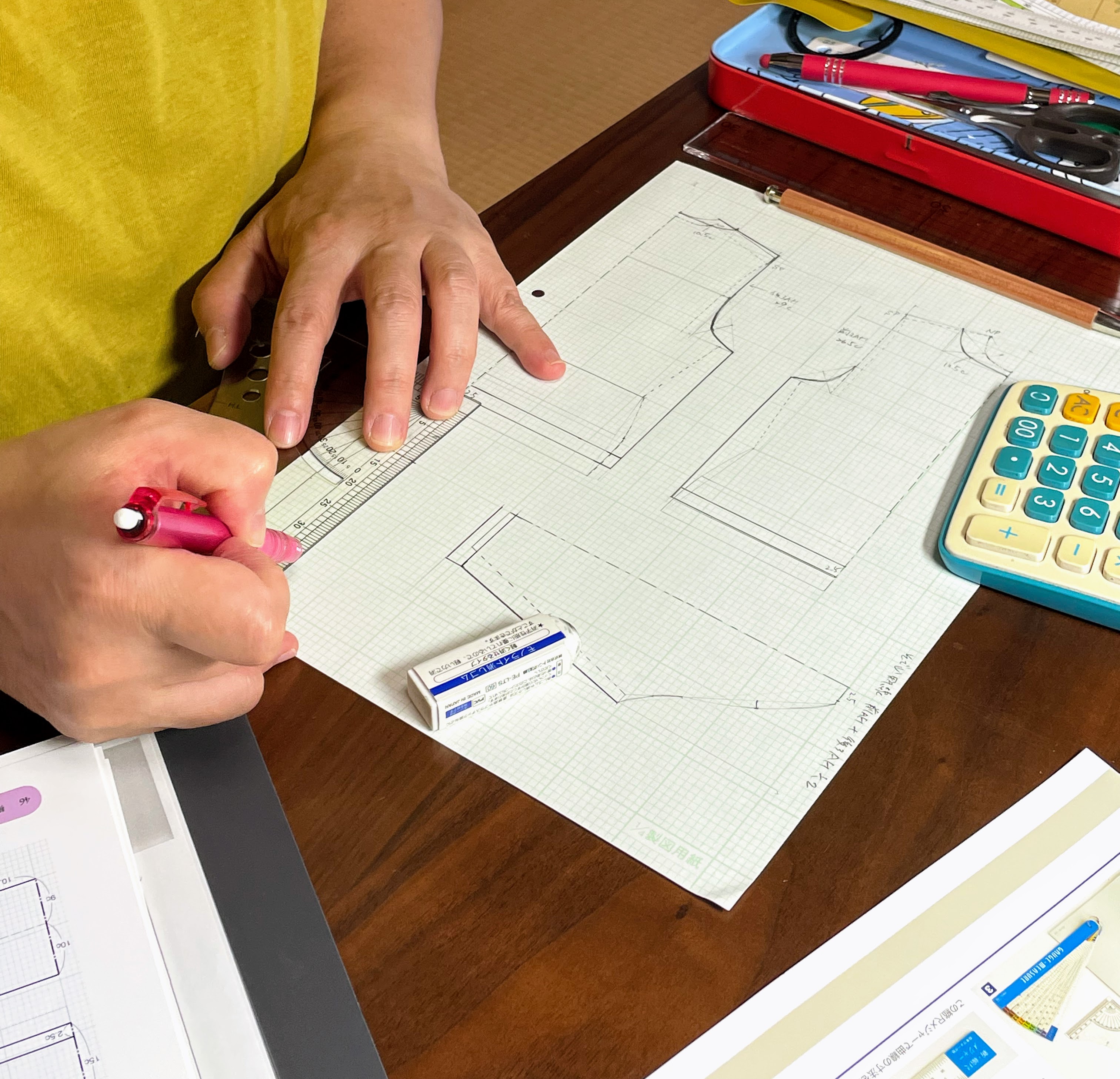 現在、課題のハイネックプルオーバーの前後身頃が完成したところだそうで
