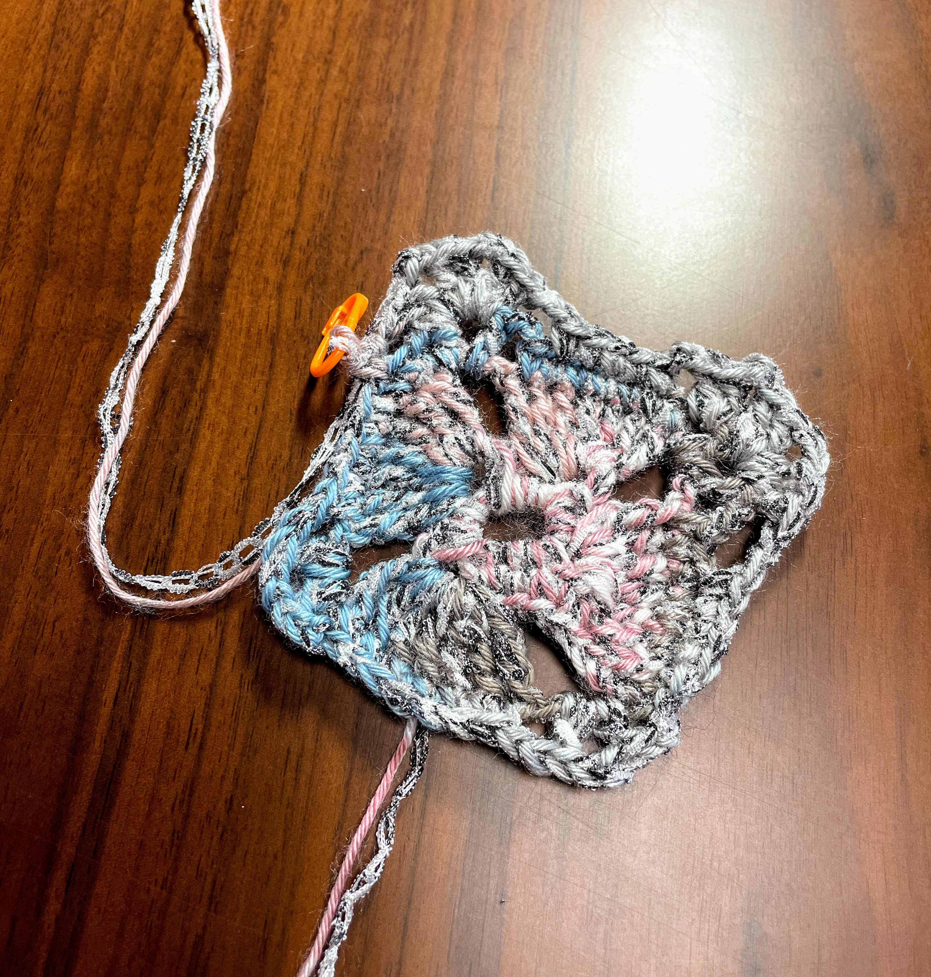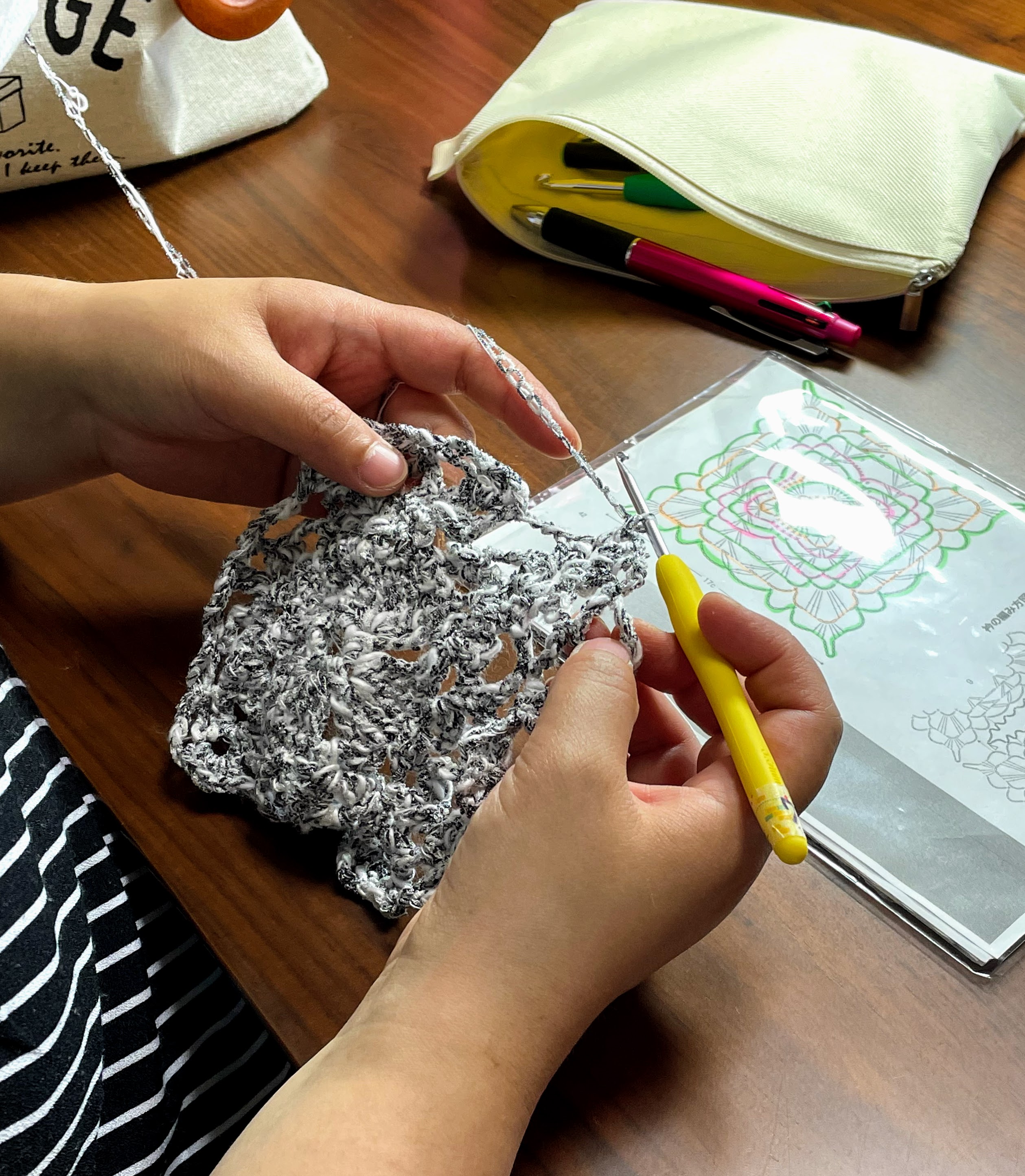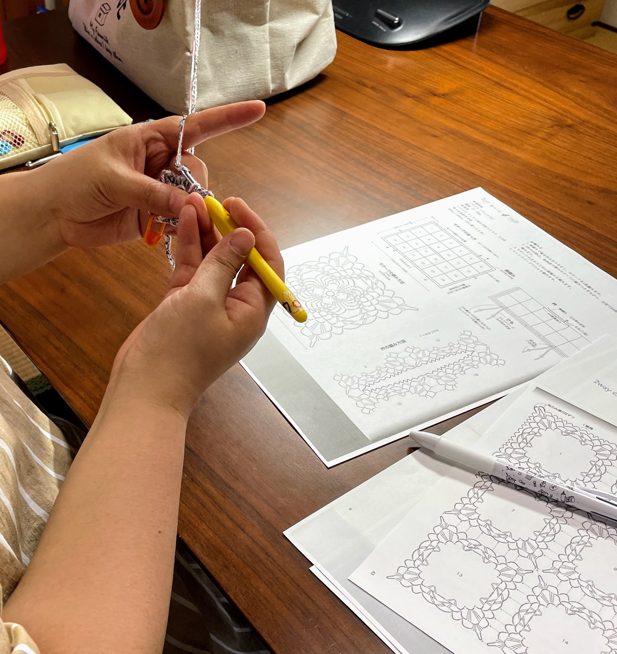 その後は、カーブに沿って、階段状に編み目を描き入れていただきました。