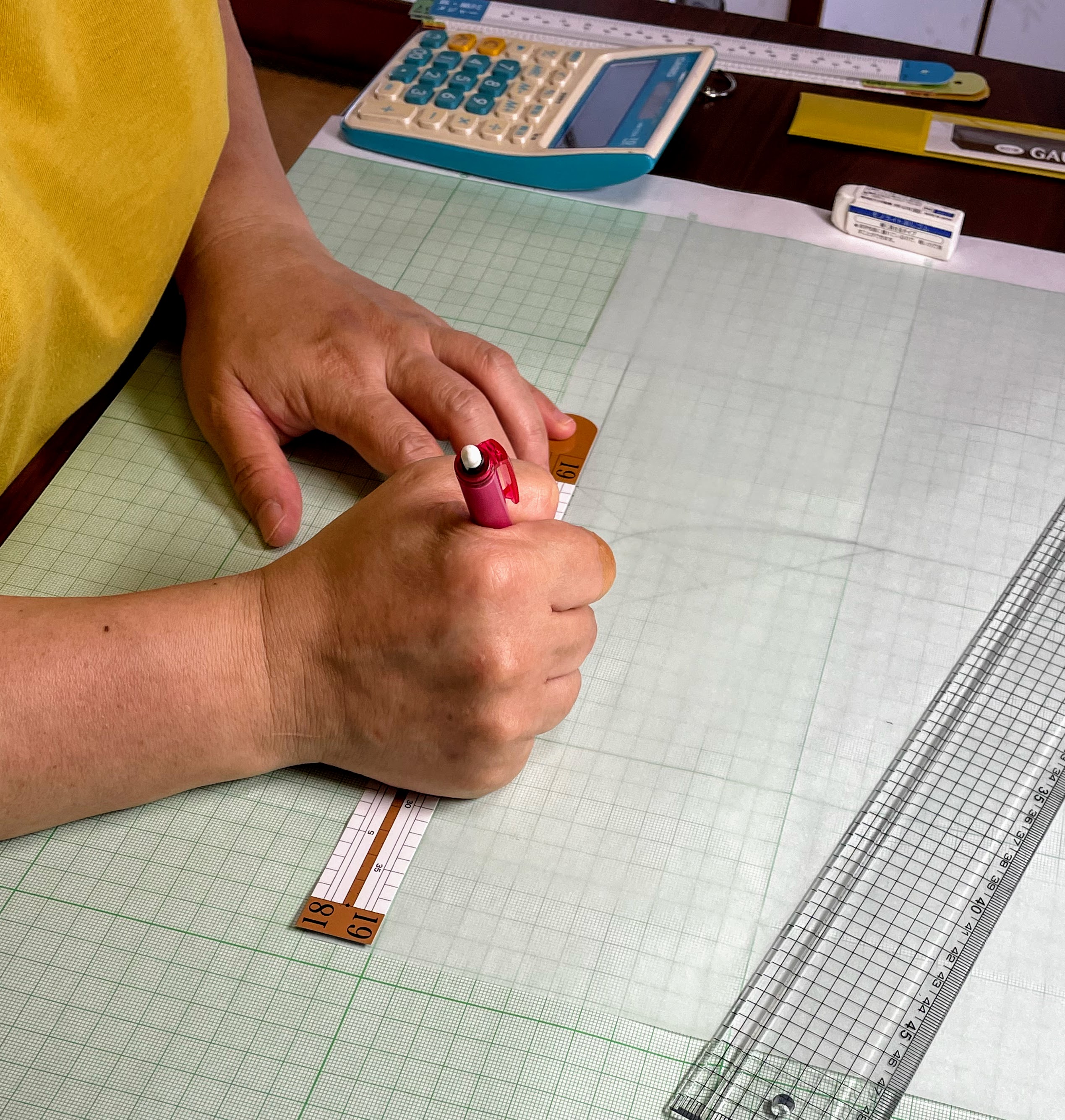 カーブ部分の袖ぐり、襟ぐりを製図していただきまして。