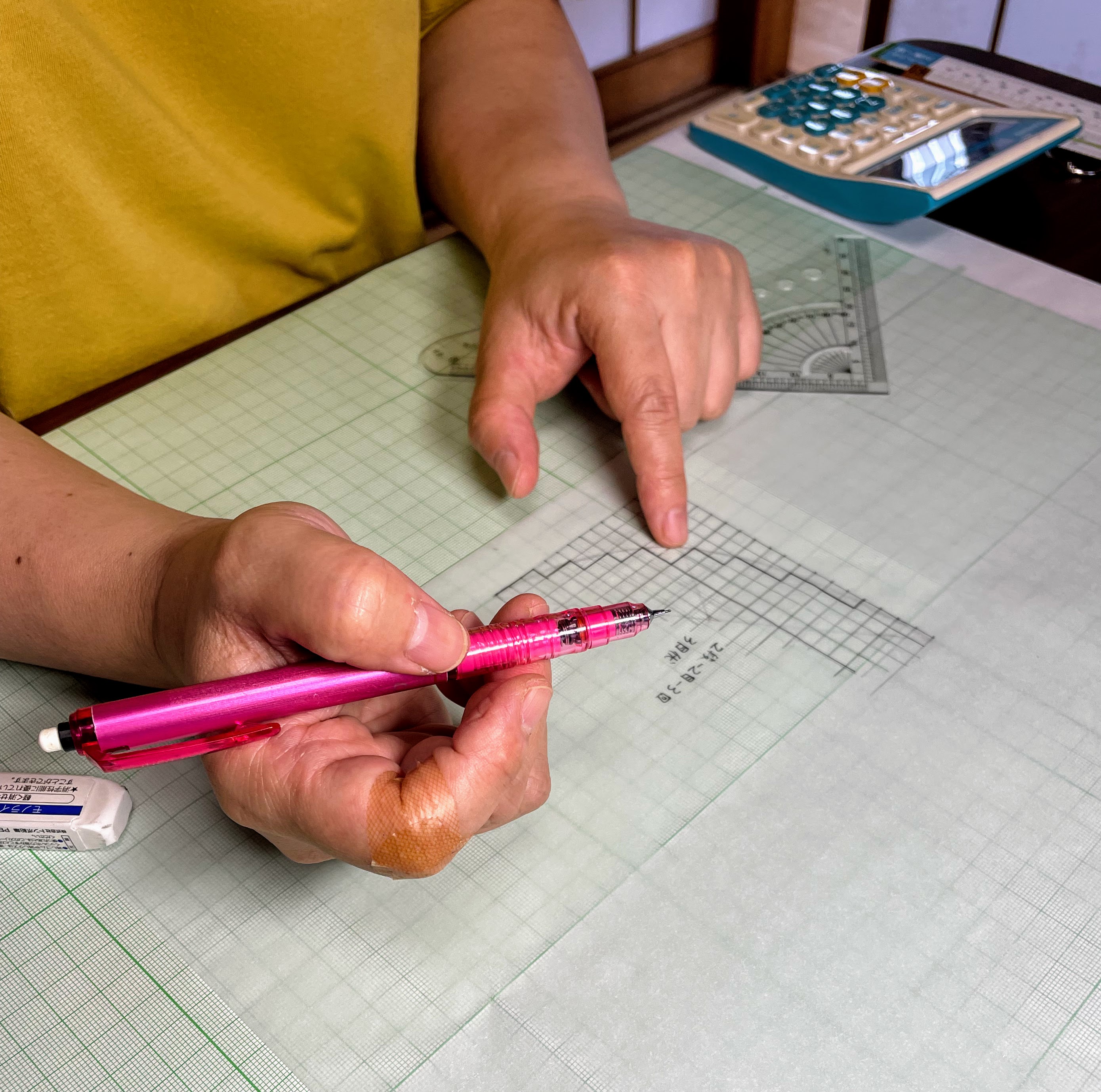 (先に4分の1サイズで製図していただいたものを確認しながら、行っていただきました