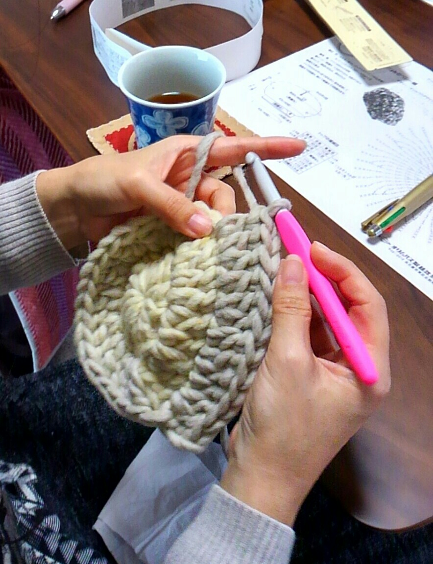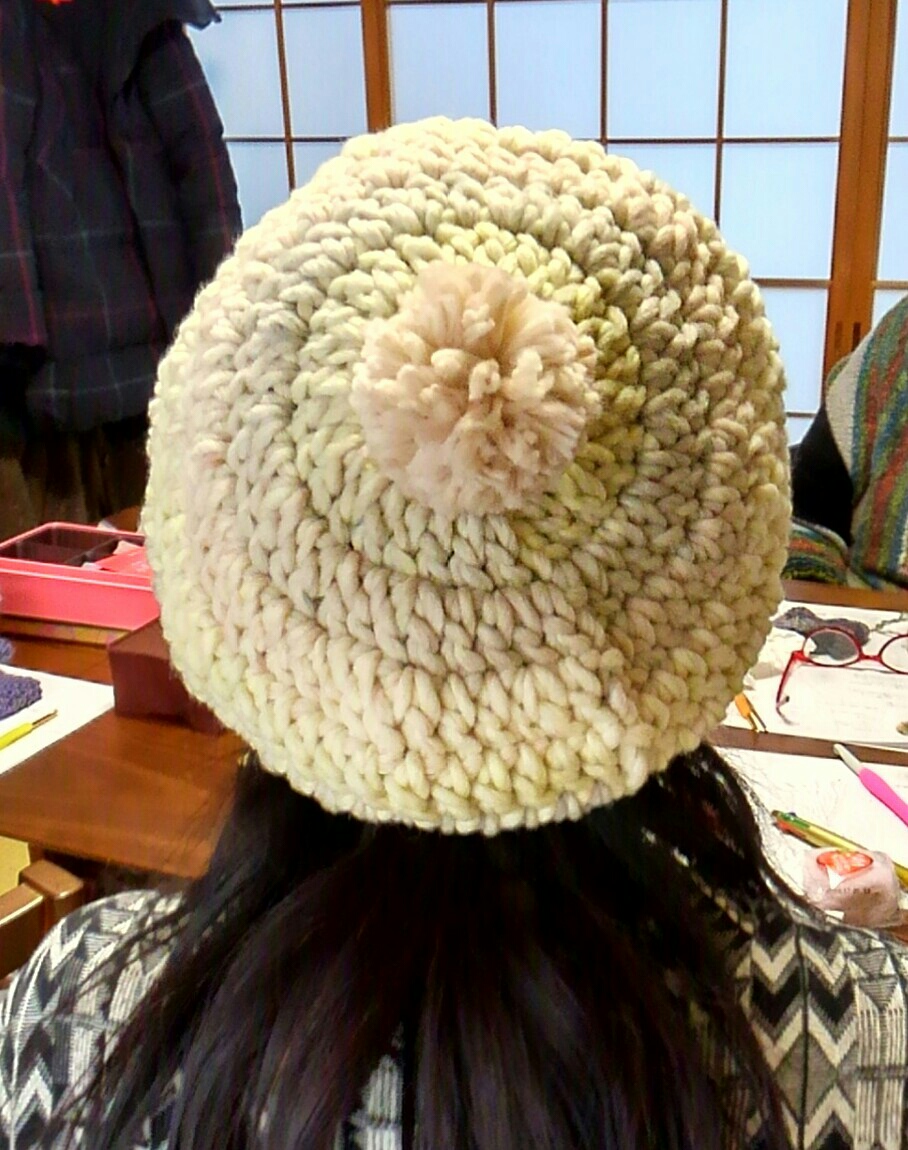 ヂヤンテイ織りの方は帽子が完成(かぎ針もノープロブレムだったんですね)、