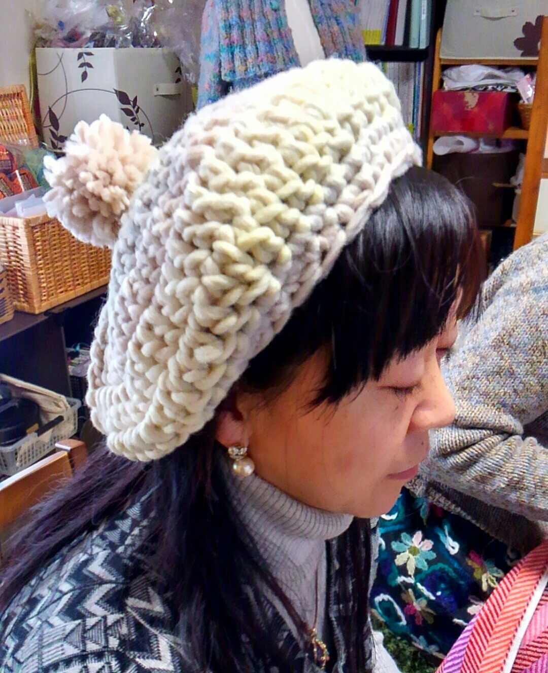 ヂヤンテイ織りのベレー帽に取り組んでいらっしゃいまして。