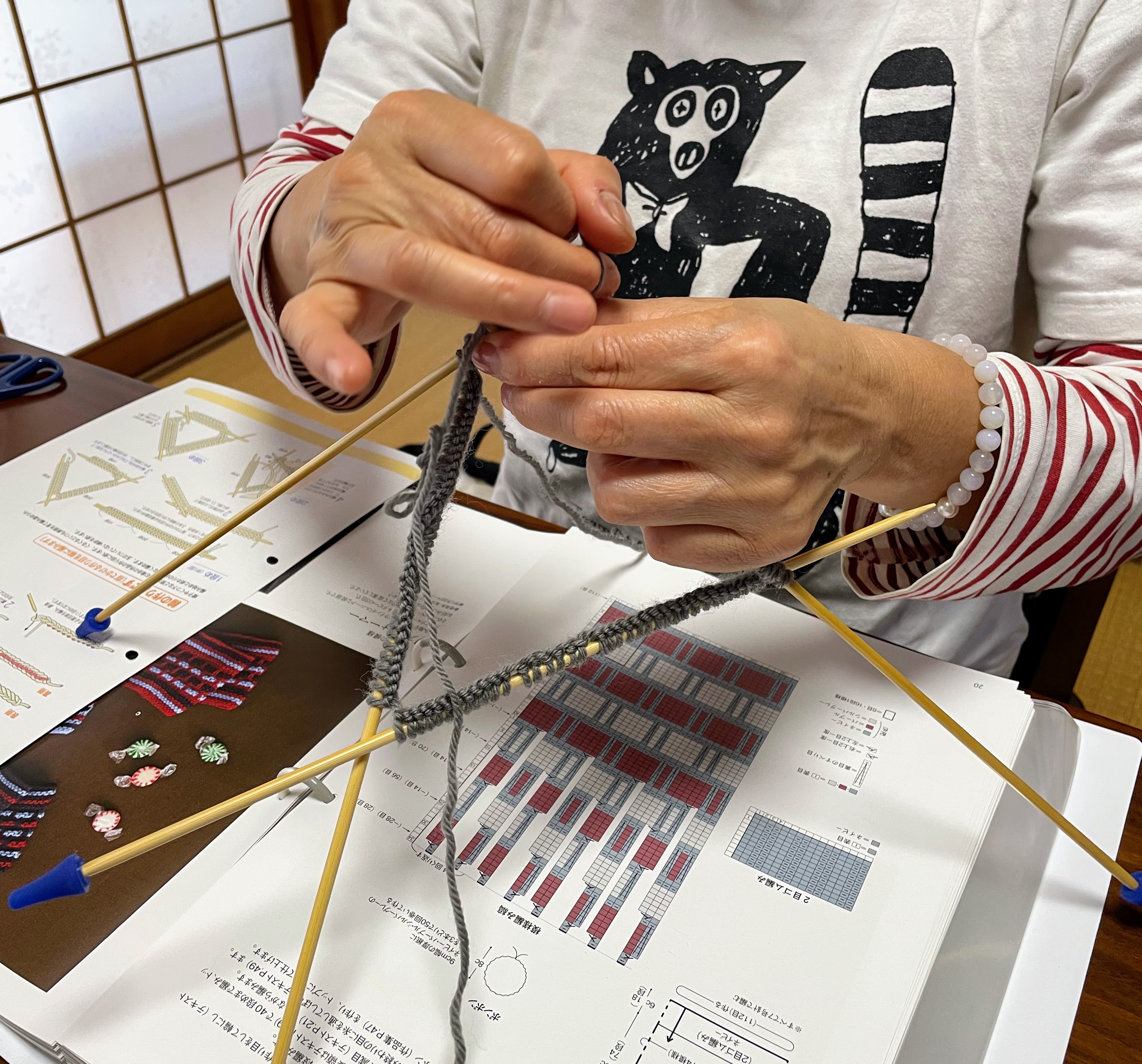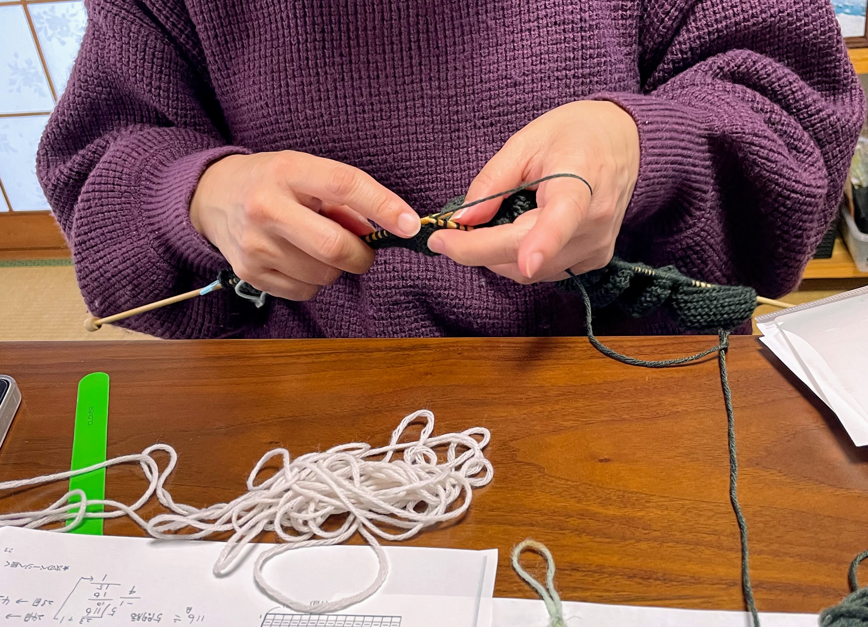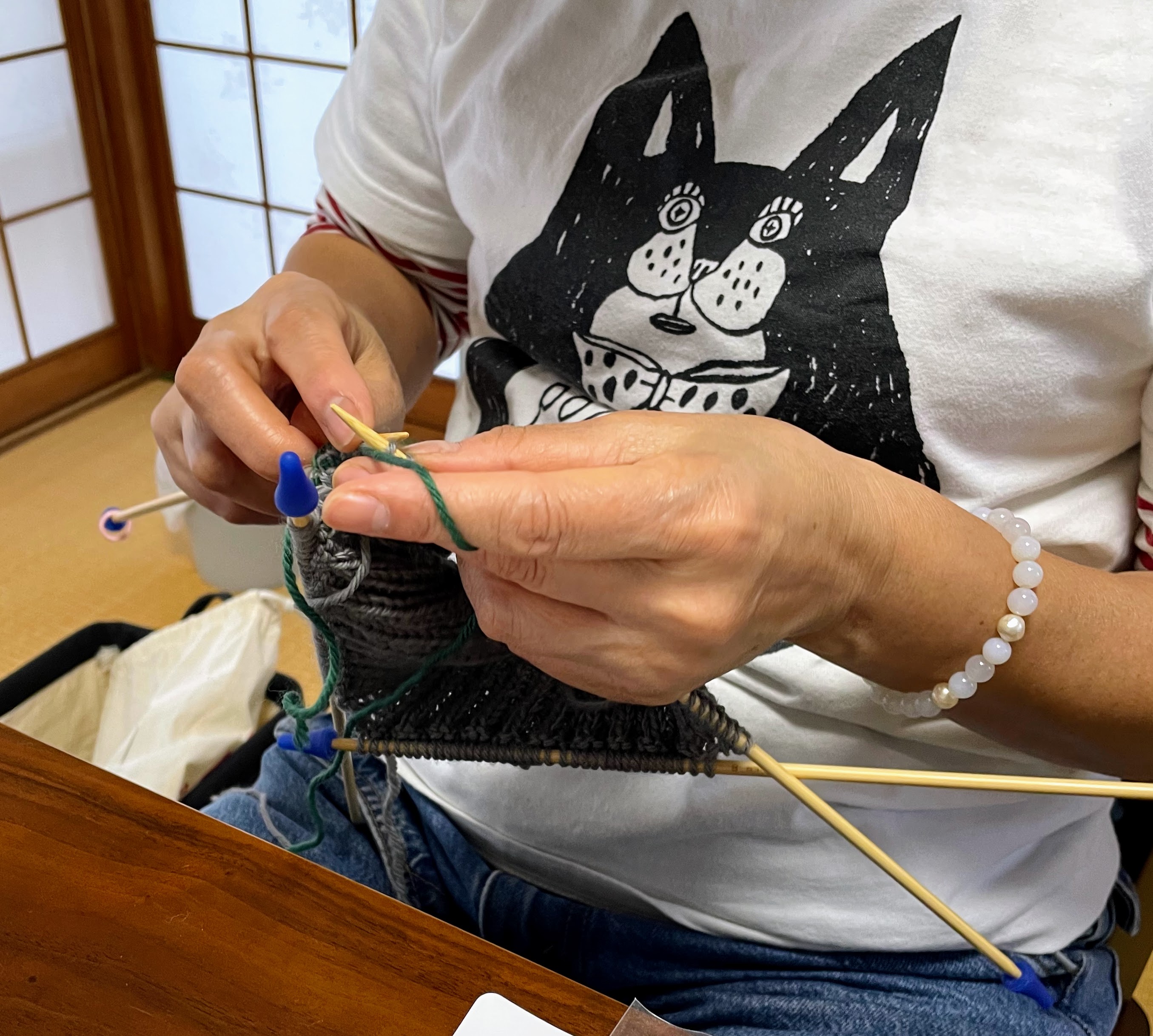 ちょうど袖の減目に差し掛かったそうなので、