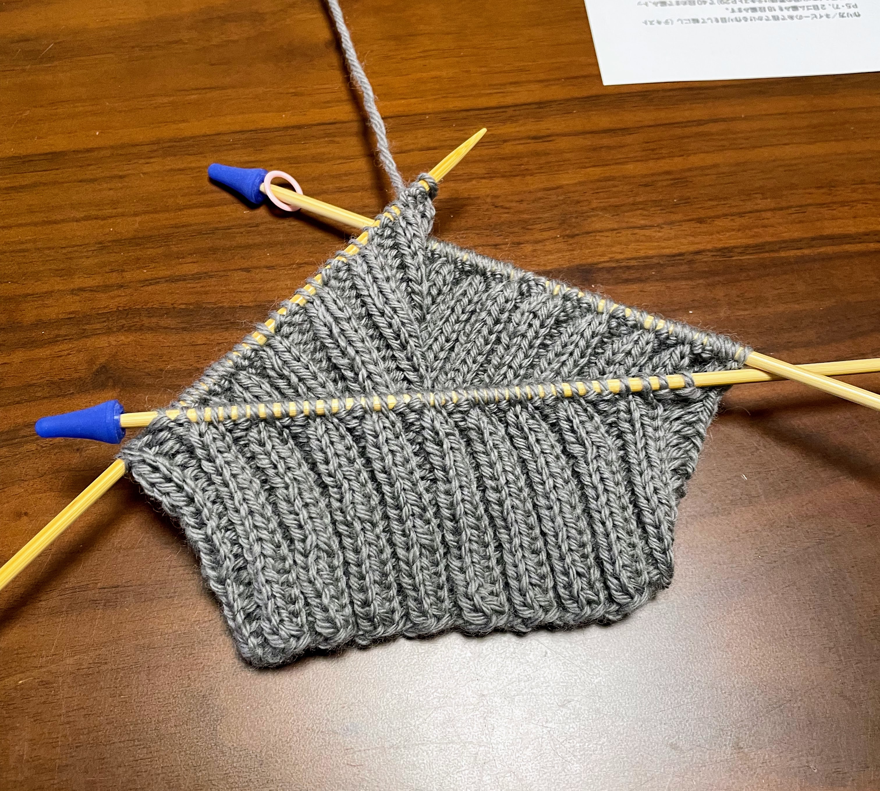 その上の模様編みに入る際に、ゲージの関係で増目する必要がありまして。