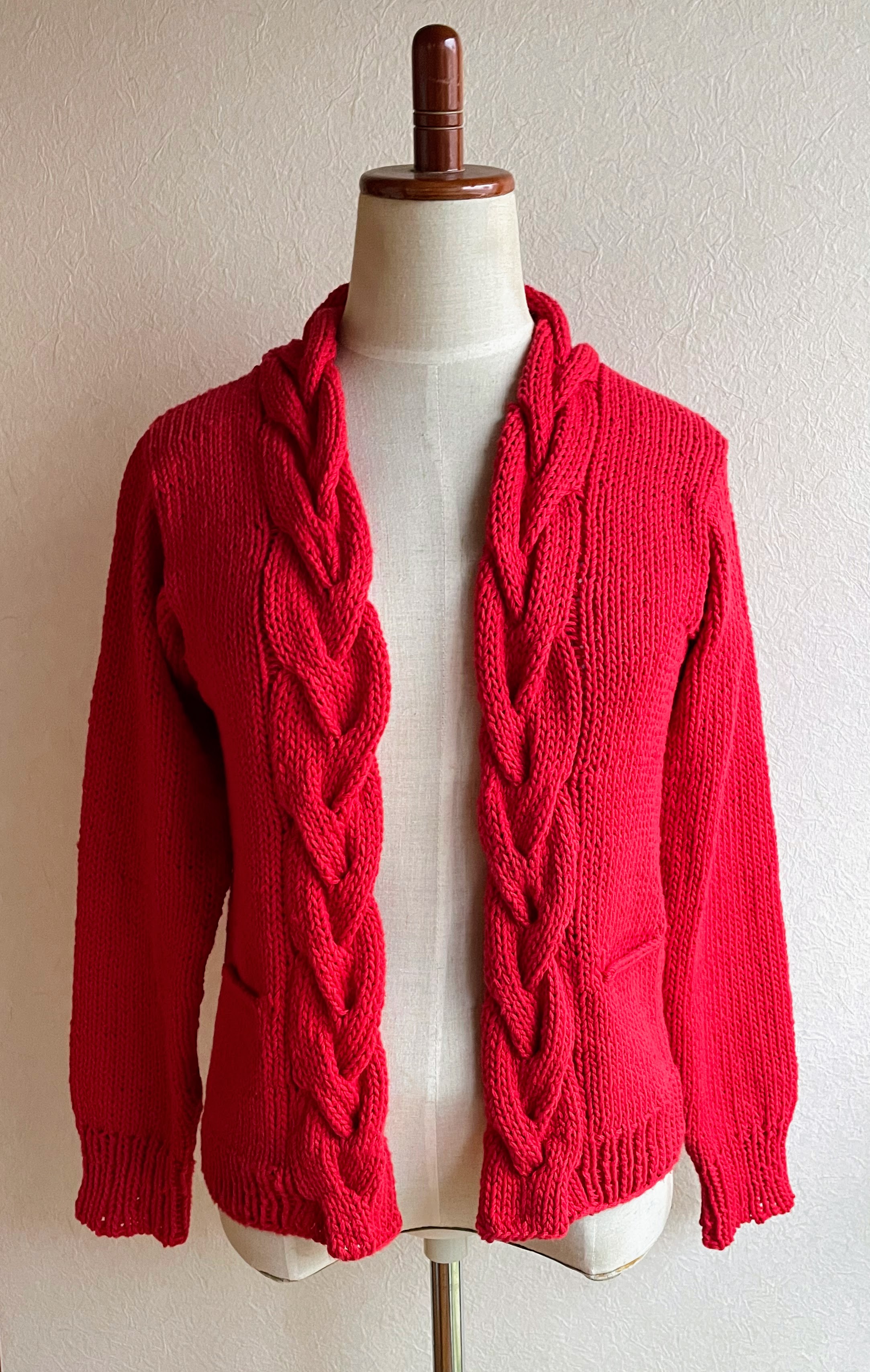 存在感ある…赤い縄編みのカーディガン