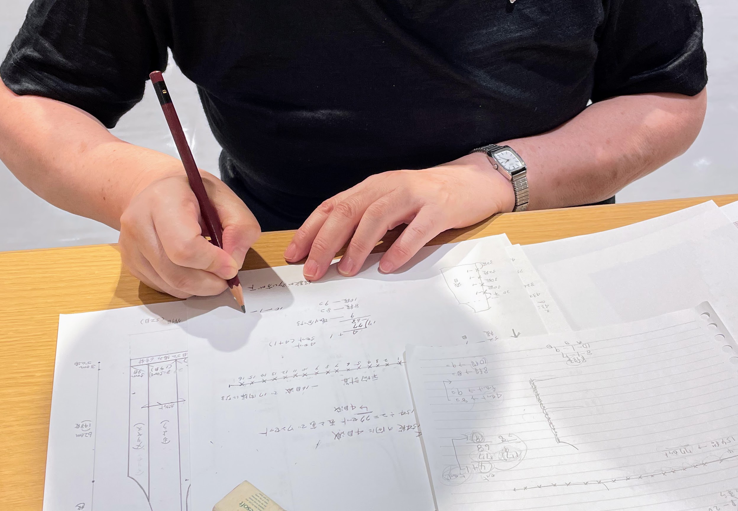 そしてその後は、袖ぐりカーブの割り出しにも挑戦していただきました