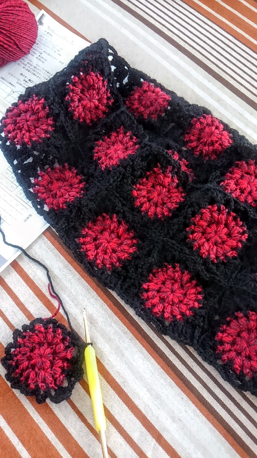 かぎ針モチーフのポンチョプルオーバーでございます。