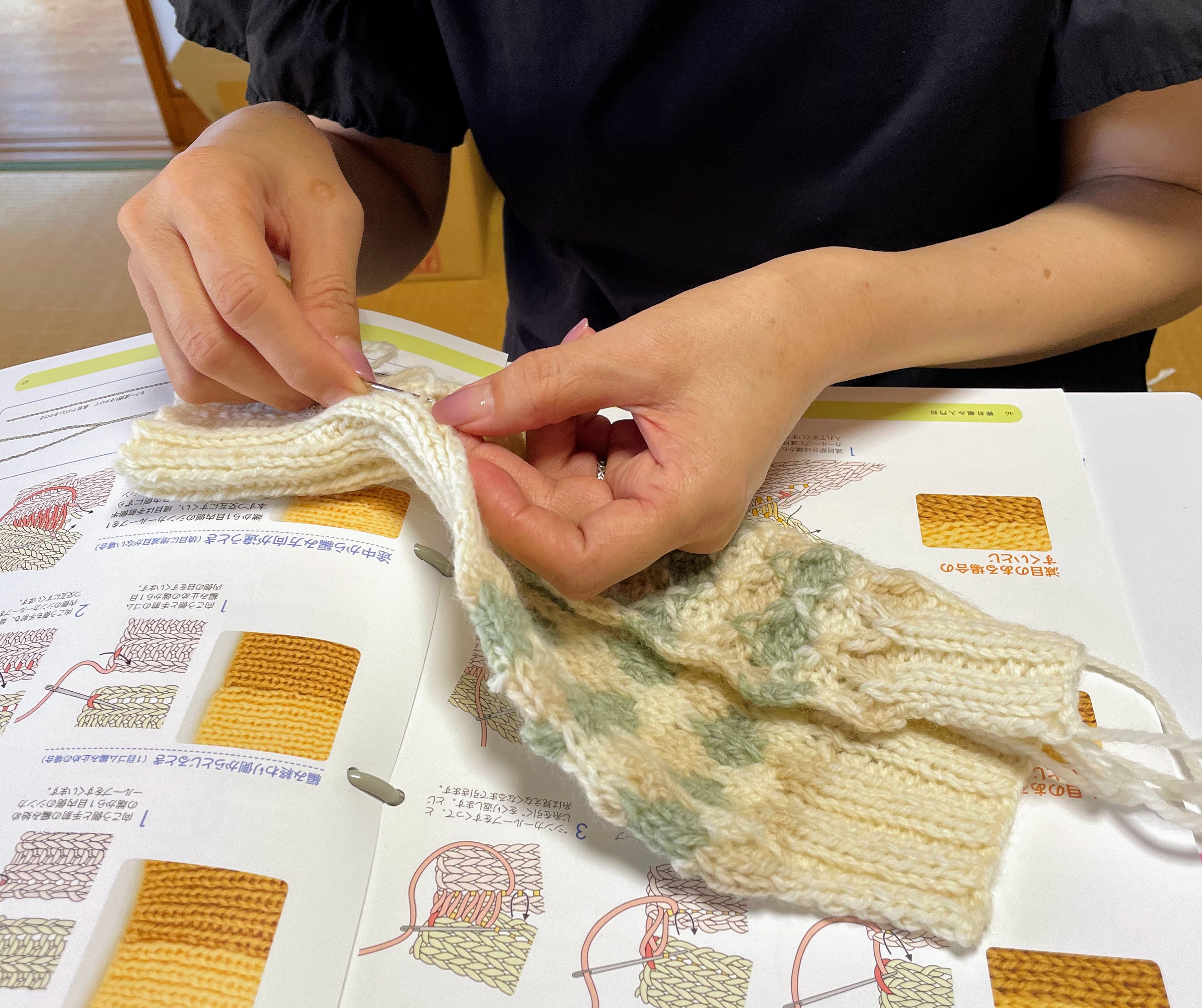 日本手芸普及協会<棒針編み入門科>のカリキュラムに取り組んでいるお方が