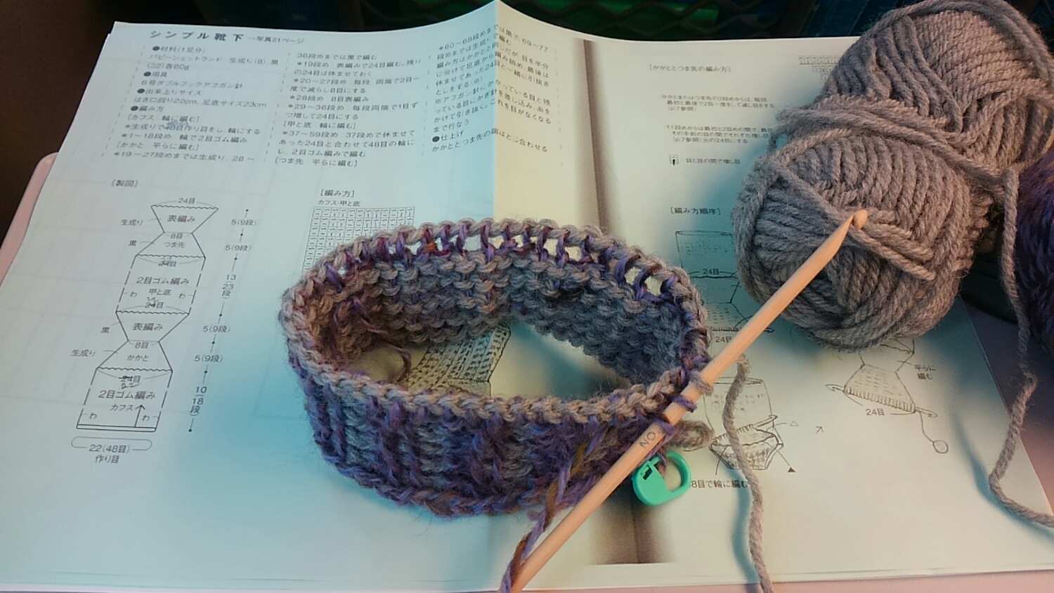 思いのほか編地が分厚くて、伸びにくい気が…。