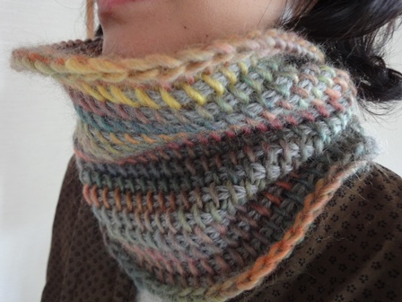 (ワタクシが編んだネックウォーマーのサンプルです)