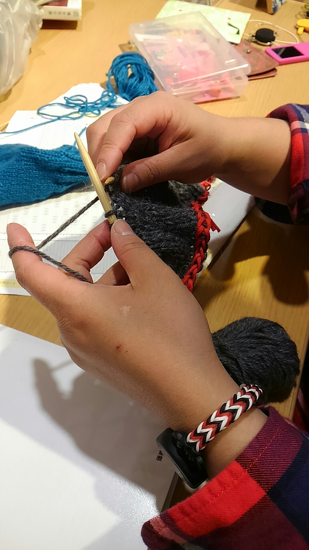 ワタクシも制作中のものを横で編んだりしているのですが、