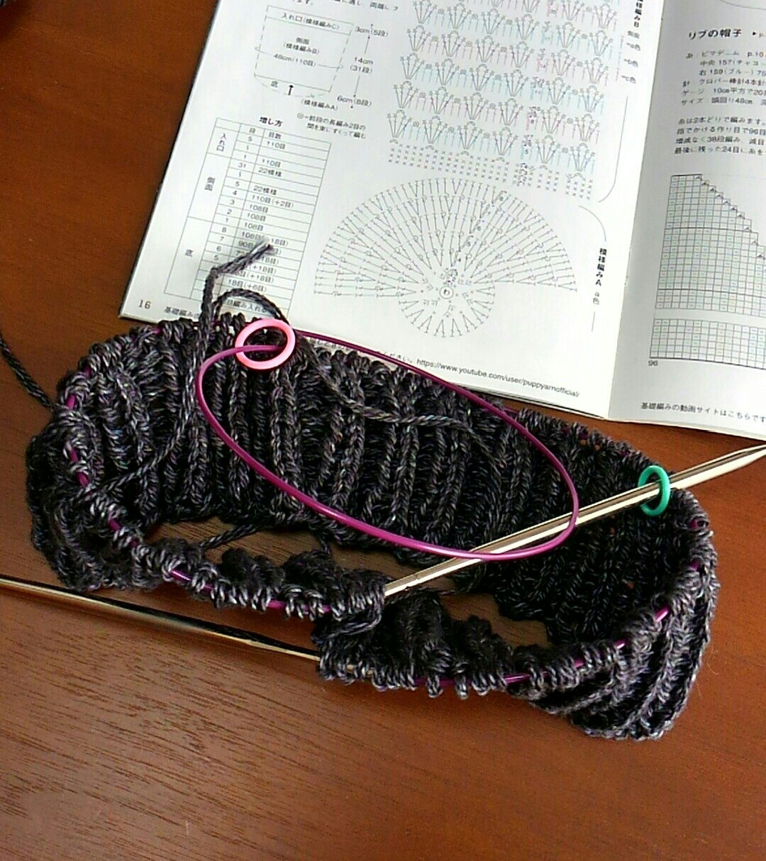 目数を半分に分け、分けた間にコードを引き出して編むやり方です。