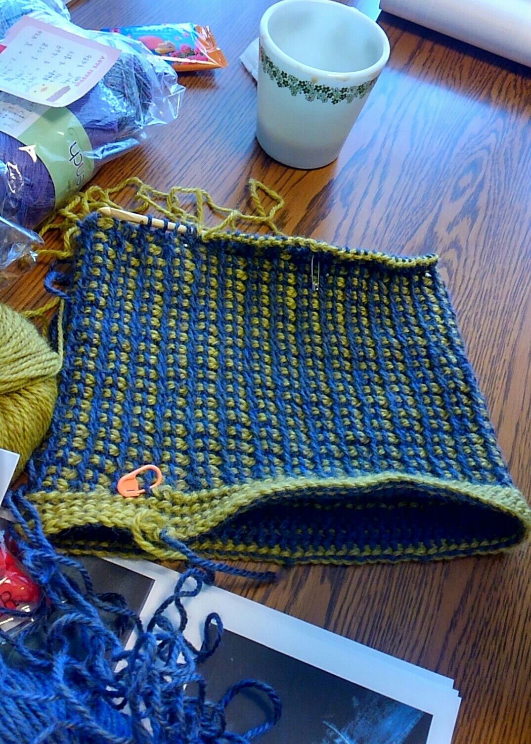(こっちは輪針で棒針編み)