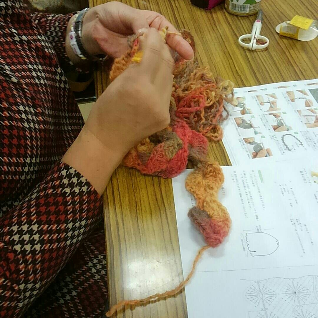 (拝見すると、段染めの軽くて編みやすそうな毛糸でした)