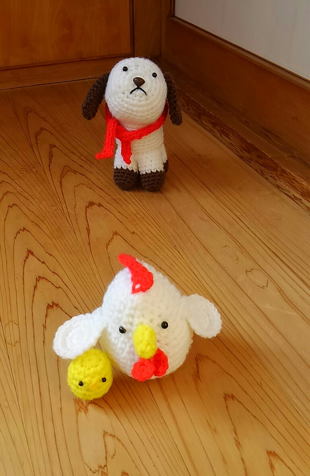 とり:おっ、いぬくん、赤いマフラー、あったかそうだね。