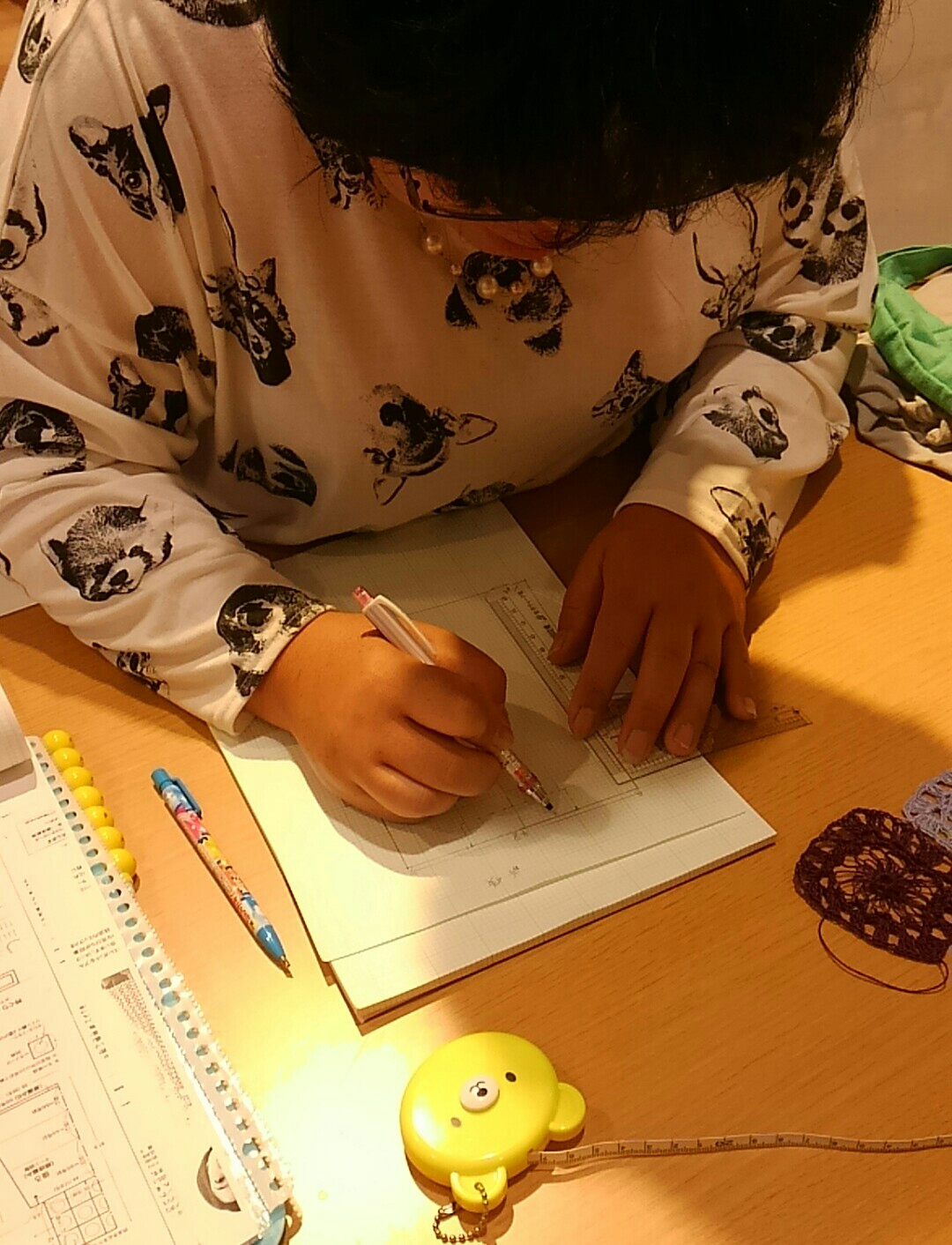 課題のウエアはご自分サイズで作っていただくことにしていますので