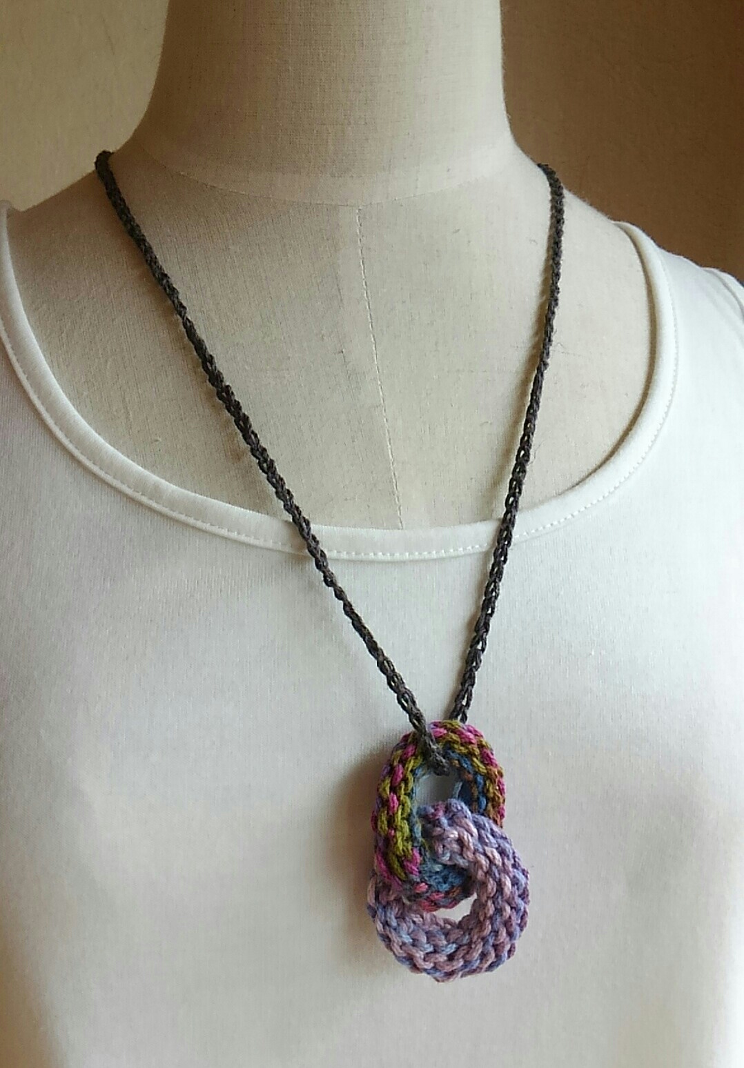 ネックレスはその編地を輪っかのようにして