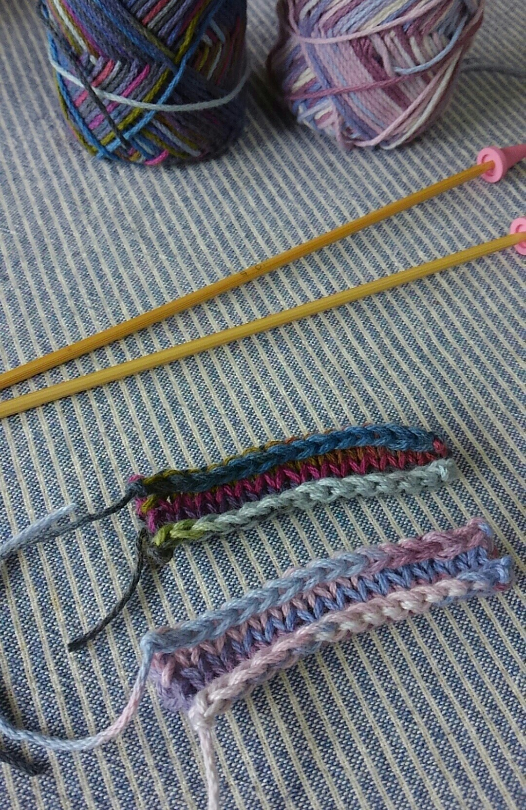 どちらも棒針編みの基本・メリヤス編みなので