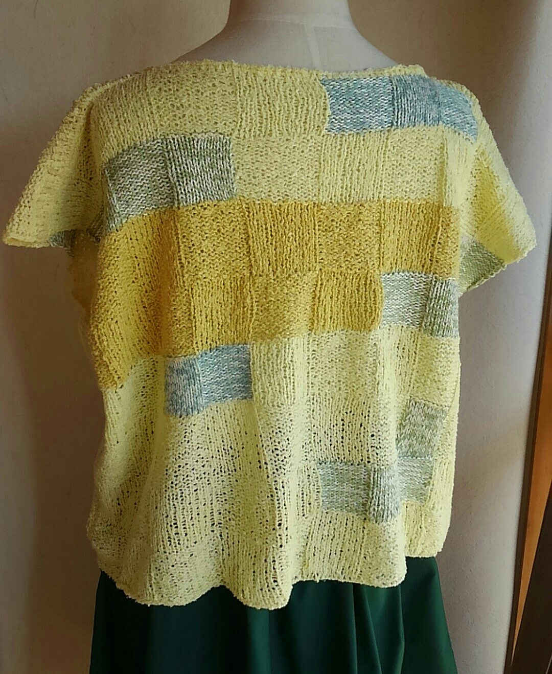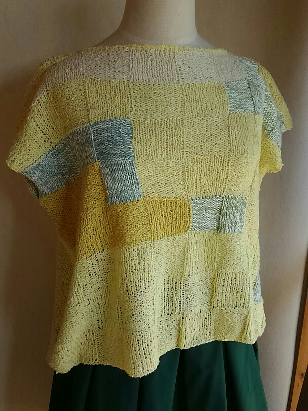 いただいた夏糸に手持ちの夏糸(差し色用)を組み合わせて編みまして。