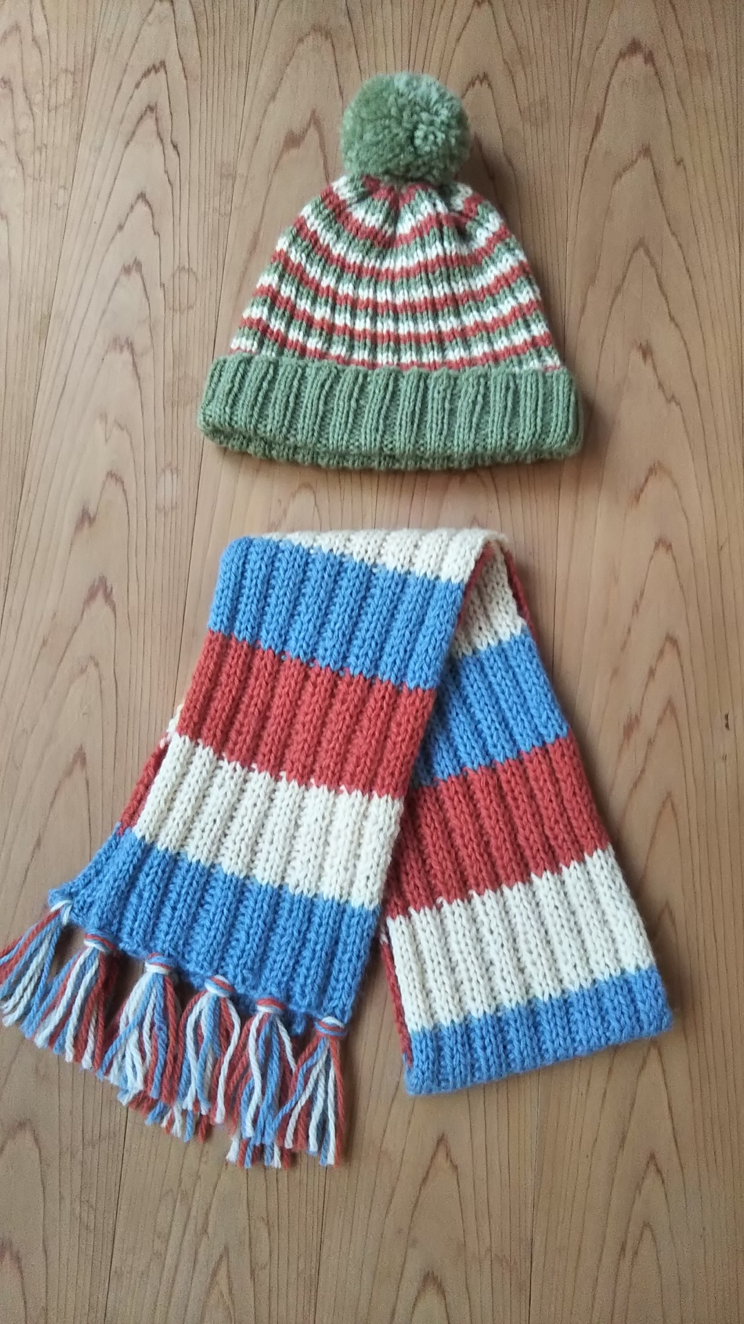 グリーンは昨年にこのボランティアに協力して編んだセーターの残り毛糸です。