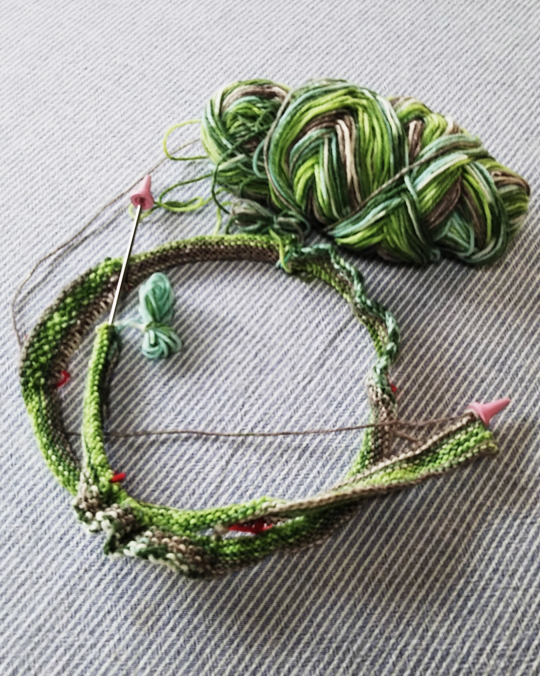 (Opalの6plyを3号100cmの輪針で編んでます)