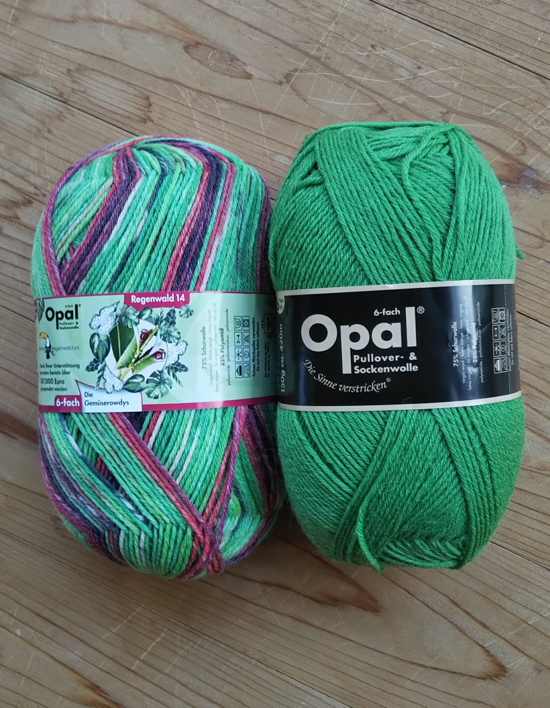 似たような色合いの毛糸(同じOpalのRegenwaldシリーズ)を