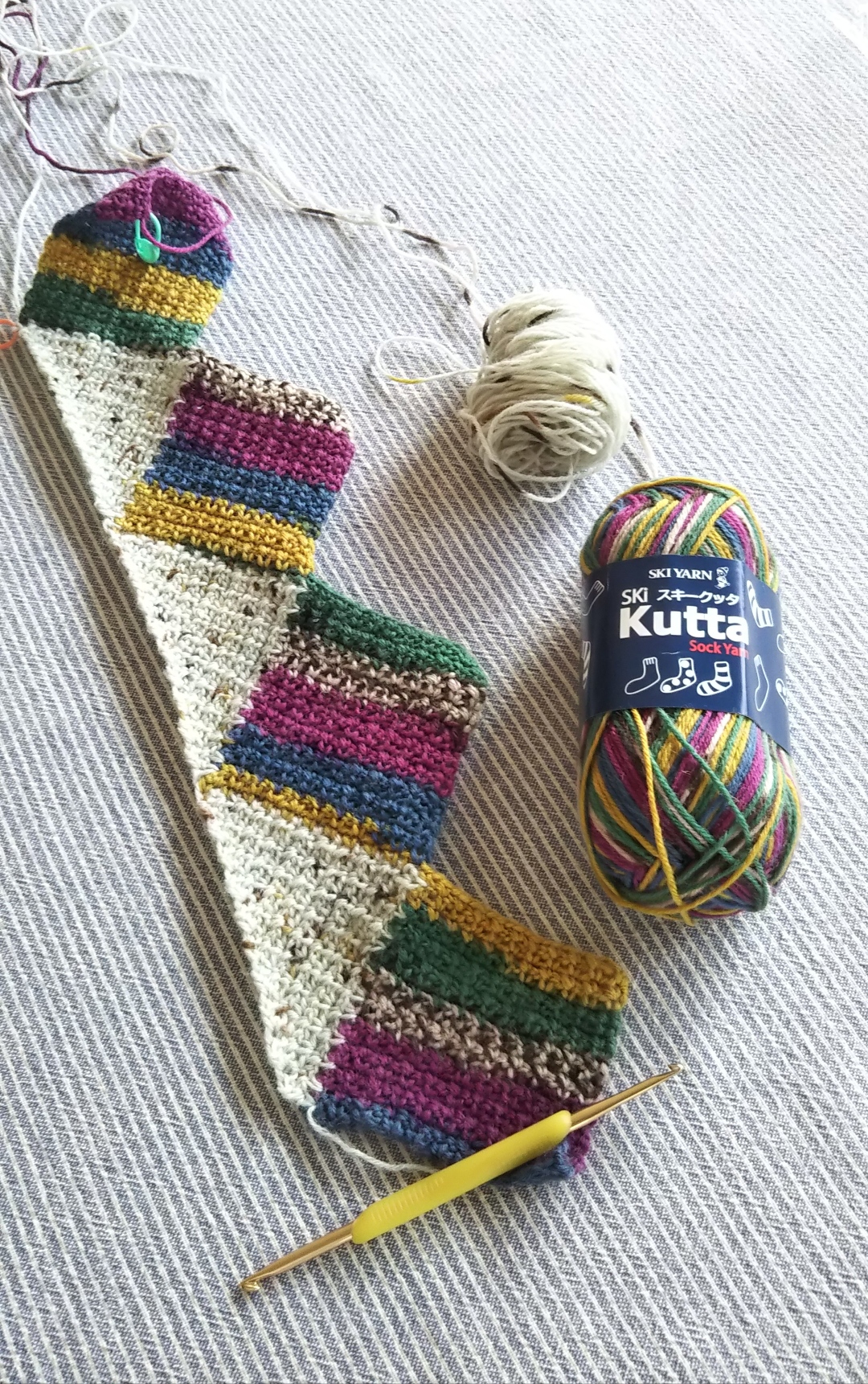 糸はスキーさんのKutta頂きものの古い中細毛糸を使用。