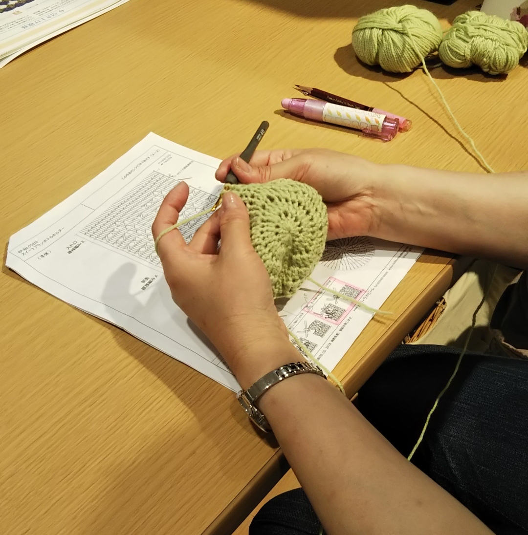 こちらは先月からかぎ針でペットボトルホルダーを編んでいらっしゃるお方。