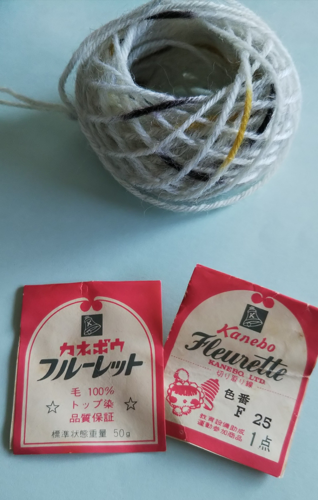 頂き物の年代物中細毛糸(カネボウ・フルーレット)を使用いたしました。