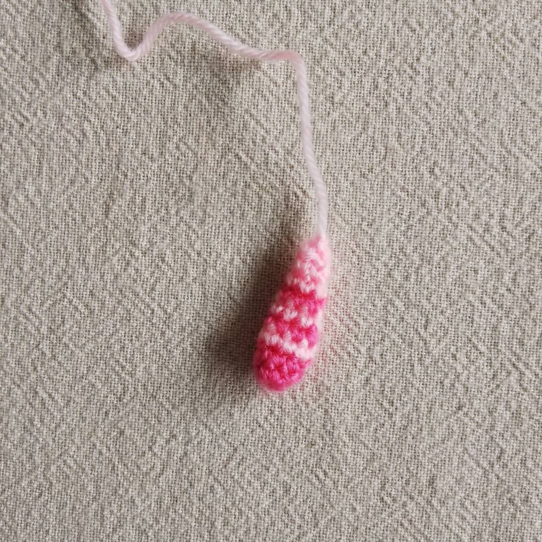 (しましま模様の足4本。1段6目の中で色替えアリ…)