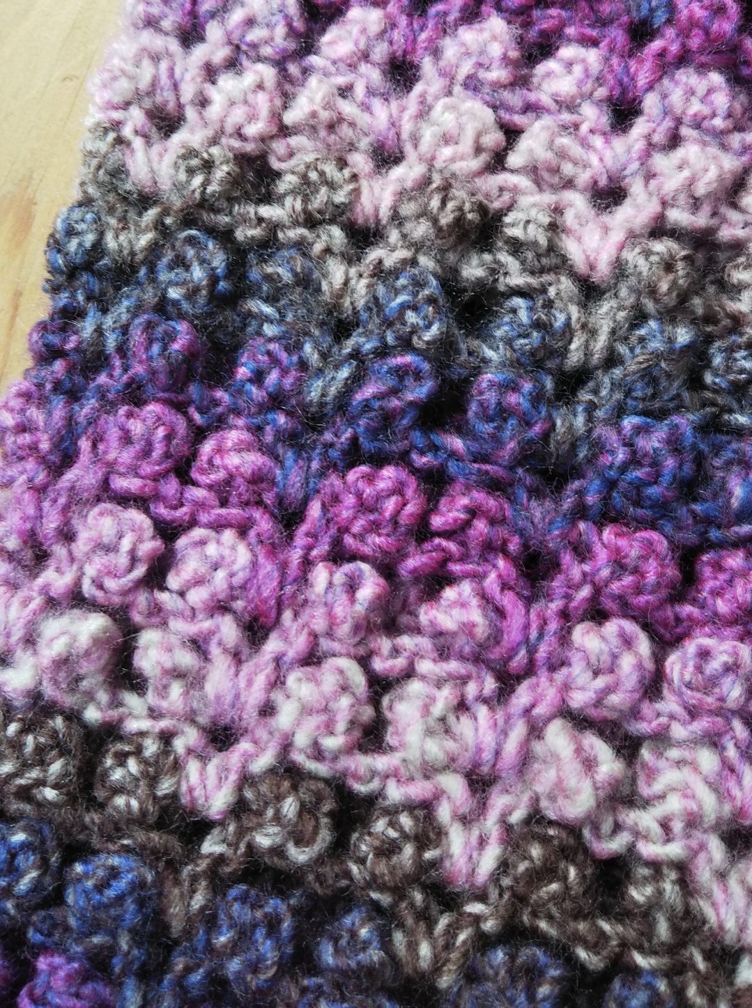 そして、このぽこぽこしたピコットは、編地の裏側に出てくるんですよ。