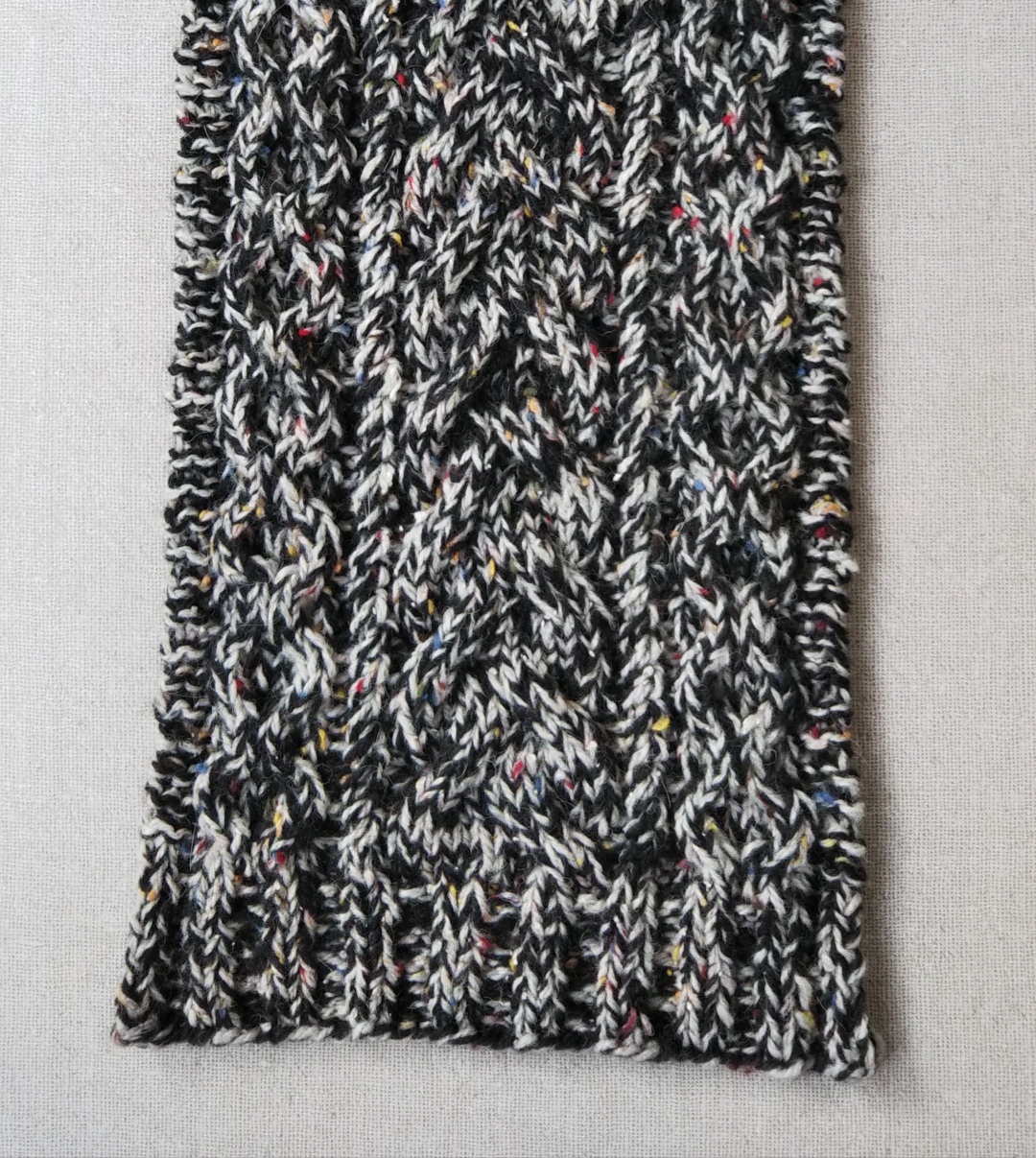 でも…よく見ると縄編み、しかもいろんな色が入っているという