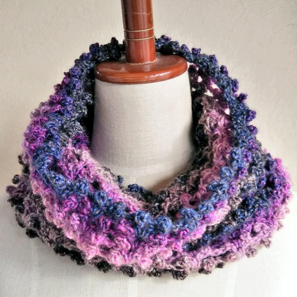 (参考作品「ぽこぽこピコットのカウル」/かぎ針編み)