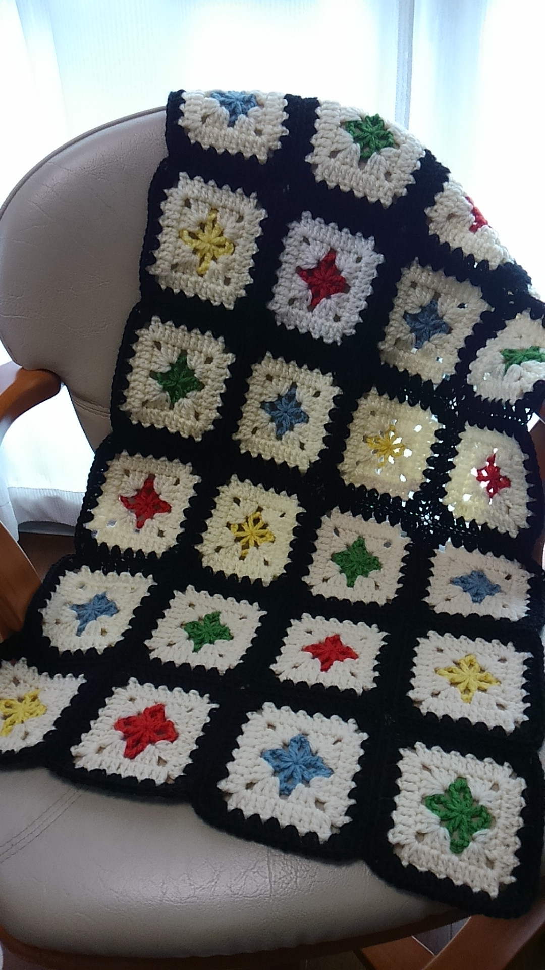 モチーフのひざ掛け、完成しましたー♪