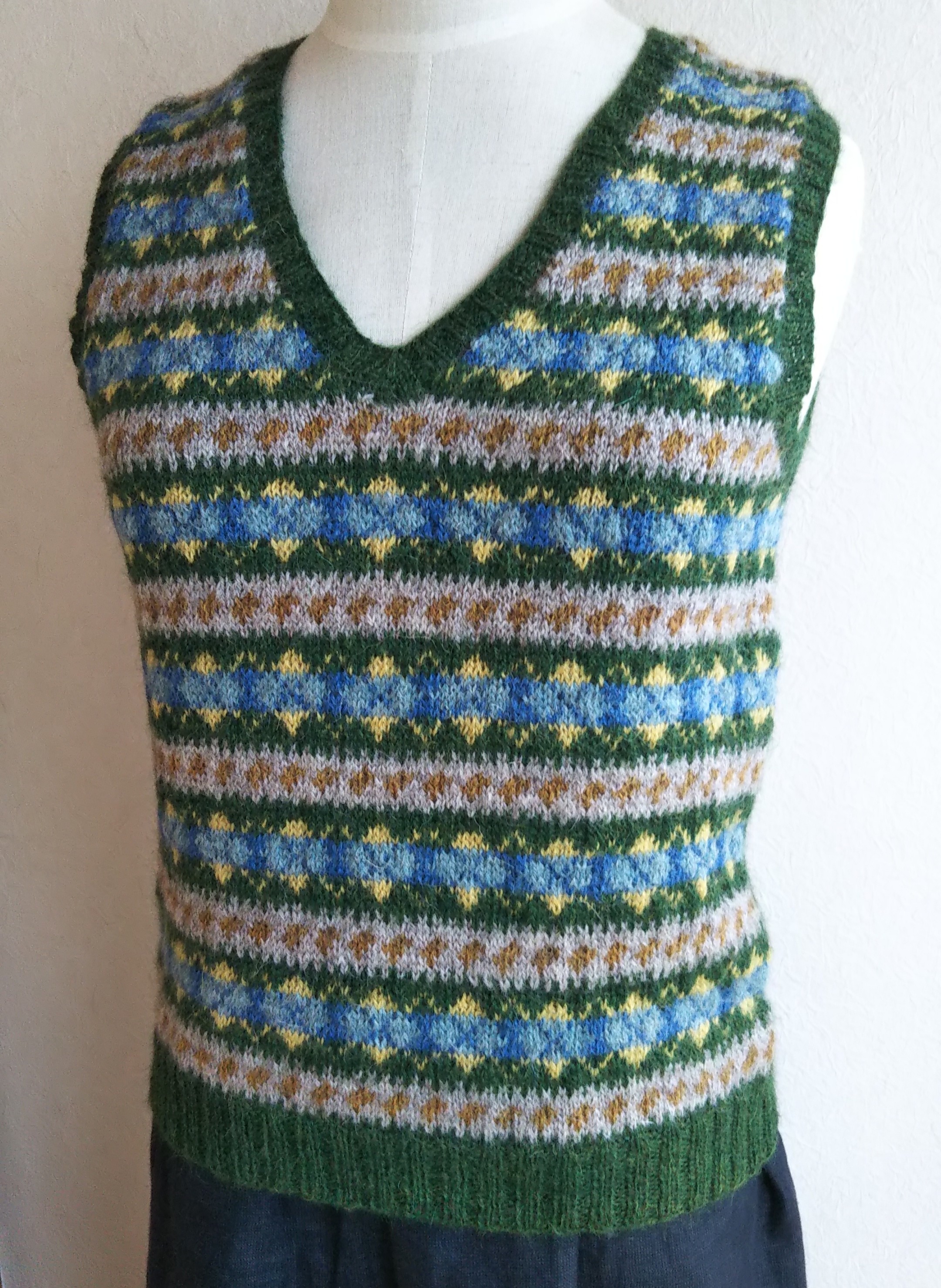 フェアアイル風Vネックヴェストがようやく完成しましたー!